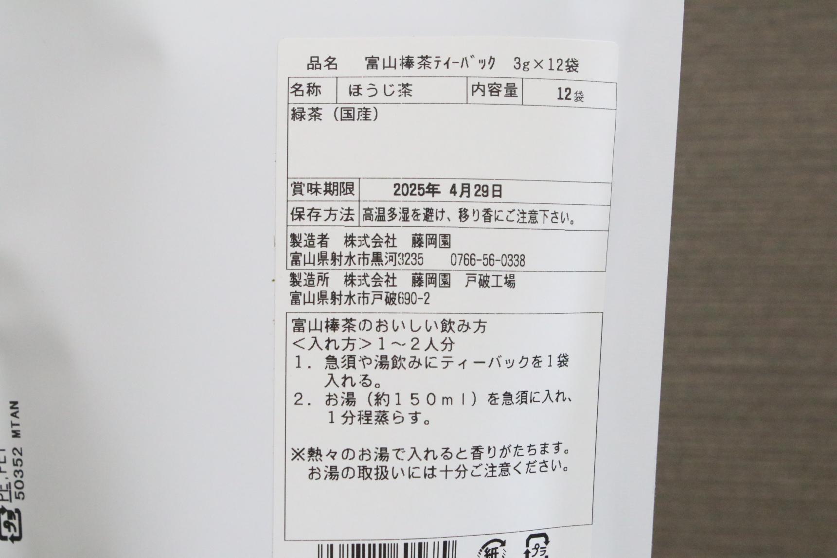 お茶菓子と一緒に、自宅用にもプレゼント用としても購入をおすすめしたいのが、富山県内で明治時代に開業したお茶屋さん「藤岡園」の「富山棒茶ティーバッグ」です。