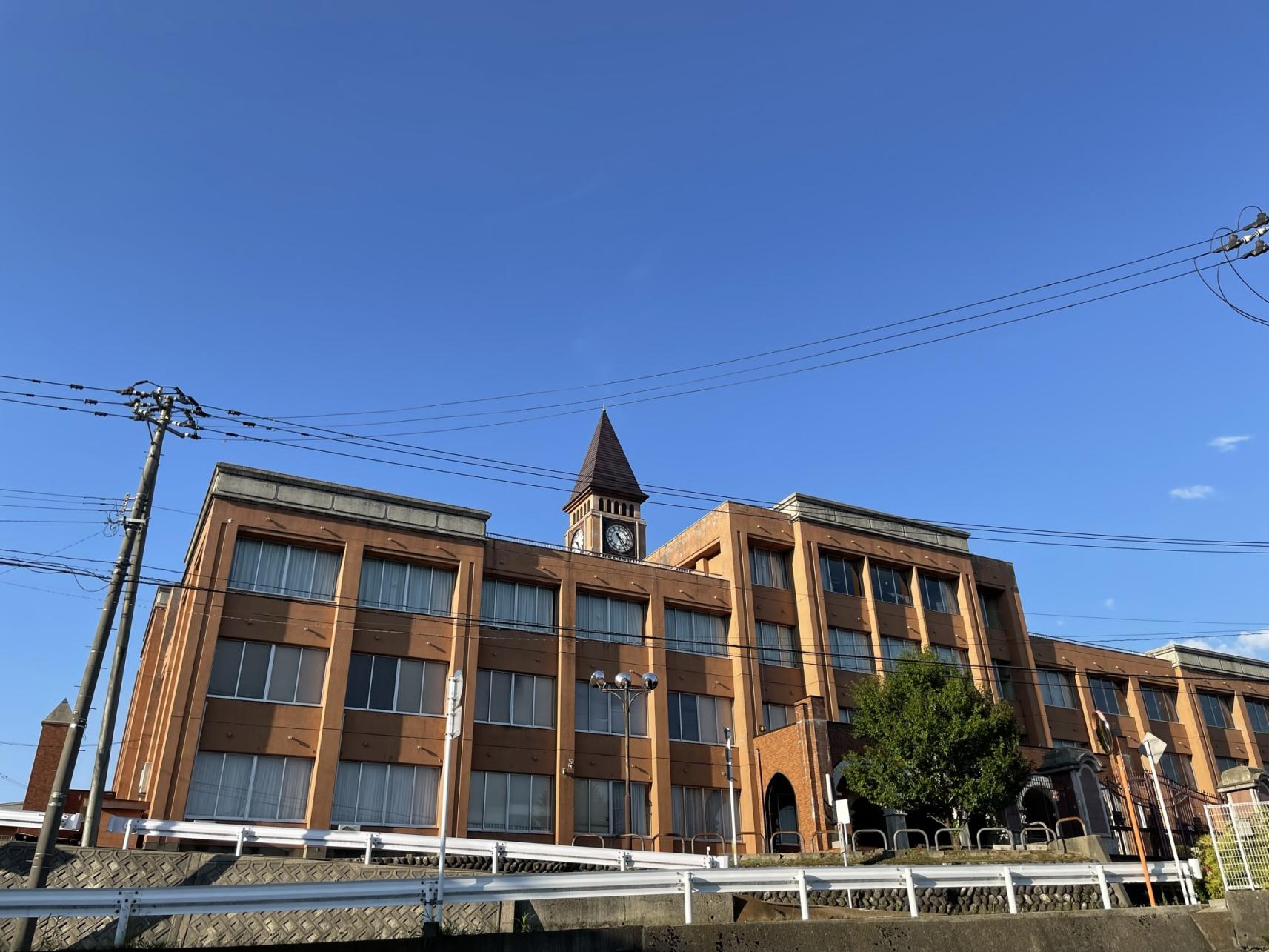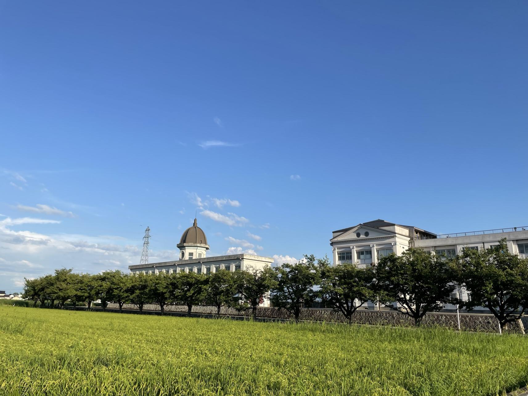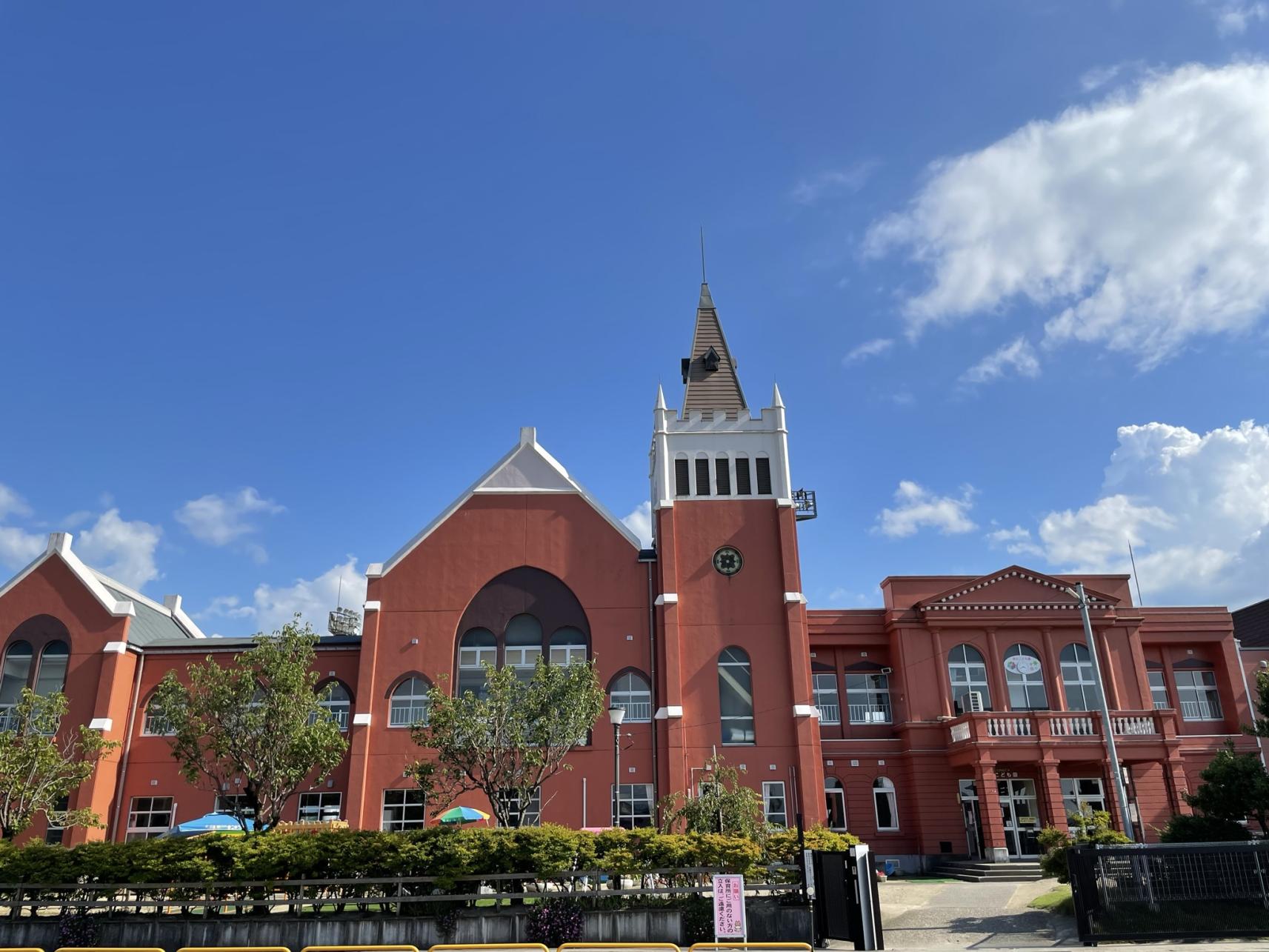 大谷(おおたに)中学校は、今回訪れた中で、最も素敵だと感じたメルヘン建築です。ナビに従って行ってみたところ、田んぼの中にヨーロッパ風の校舎が現れて、本当に驚きました。本体の塔屋は東大安田講堂、正面は東大教養学部、高さ47mの塔の先端はオックスフォード大学の学生寮をモチーフにしているそうです。時間がない方は、ここだけでもぜひ見に行ってみてください。