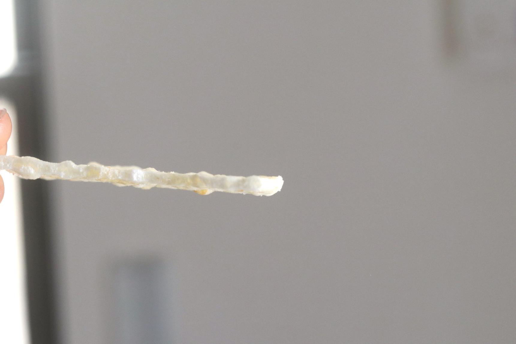 食べてみると、薄くてサクサク。噛むたびに白えびの風味が広がり幸せな気持ちになります。とても軽い食感なので老若男女問わず食べやすいです。