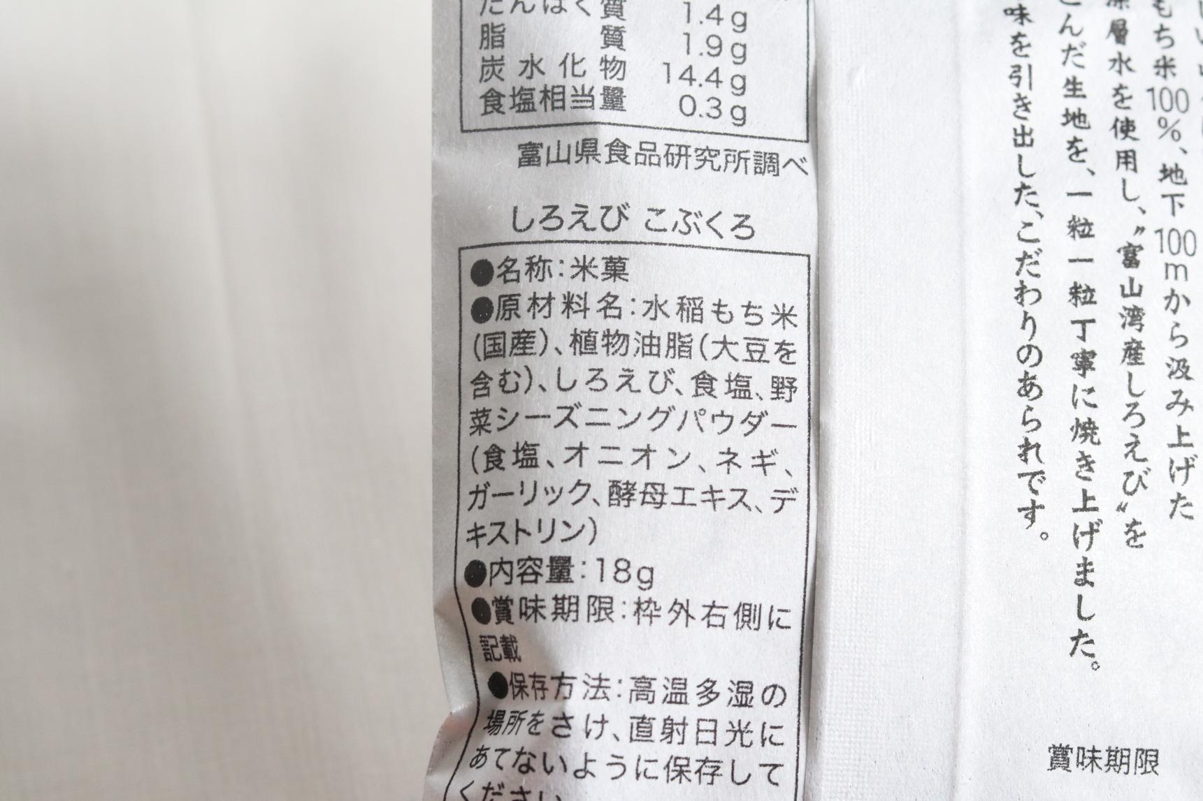 砺波市にある丸米製菓が出している「しろえびあられ」は、化学調味料を使っていないのが特徴です。小ぶりで食べやすいサイズ感になっています。