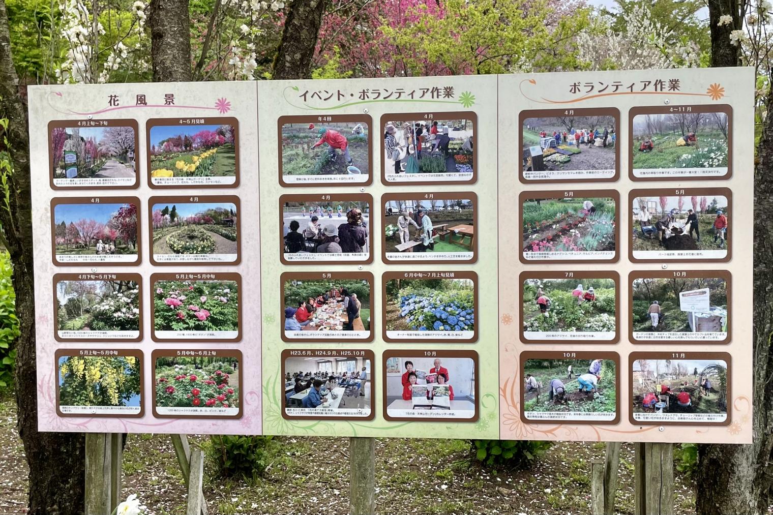 こちらは、2022年4月に行った時の様子です。水仙、ハナモモ、チューリップが見ごろでした。シャクナゲも美しかったです。平日にも関わらず多くの方が訪れており、人気のほどがうかがえました。