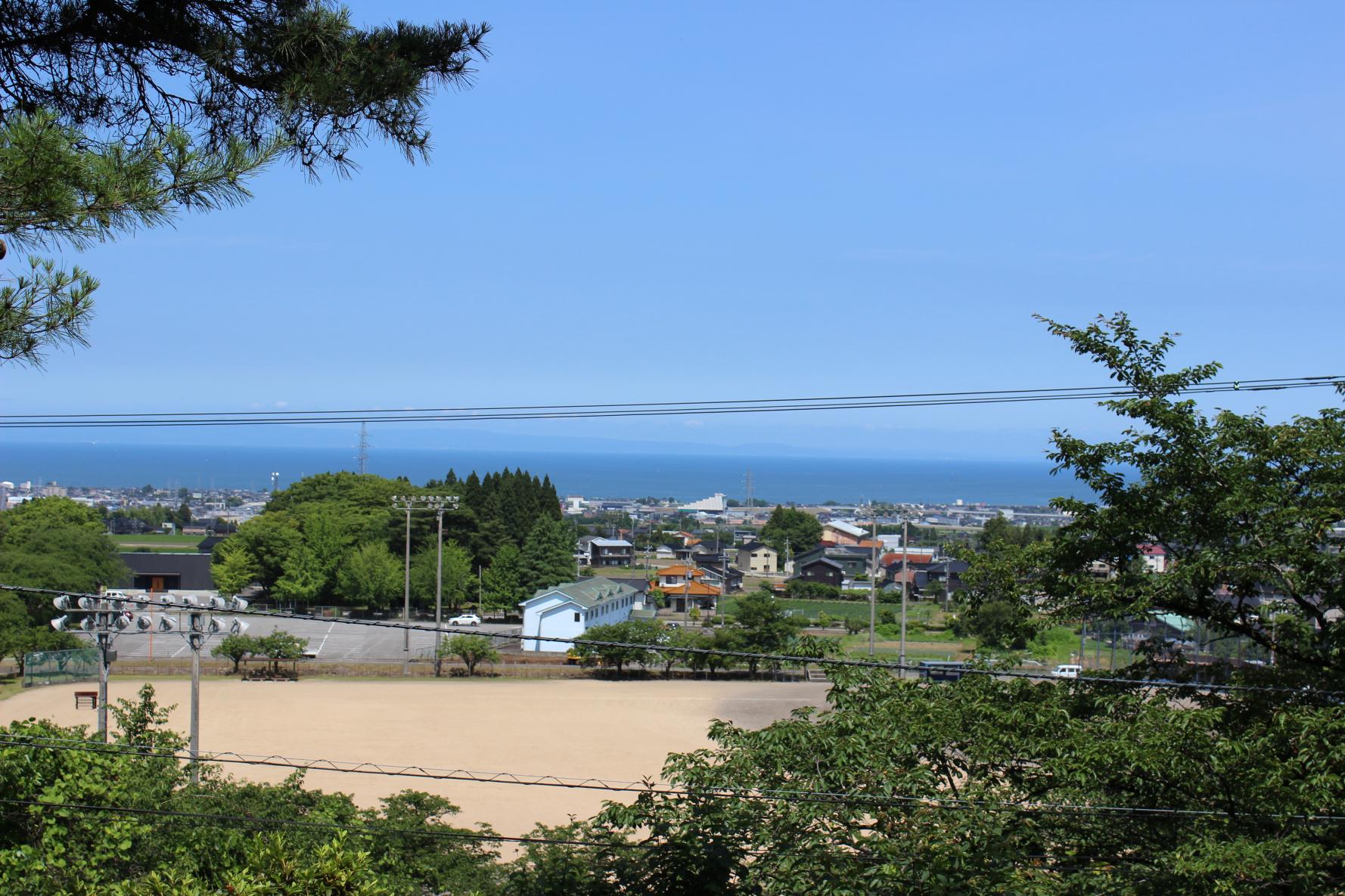 小道と階段を抜けたところにある「魚津歴史民俗博物館」の横は、知る人ぞ知る絶景スポット! ここは見晴らしがとても良く、天気が良い日は海まで見えます。