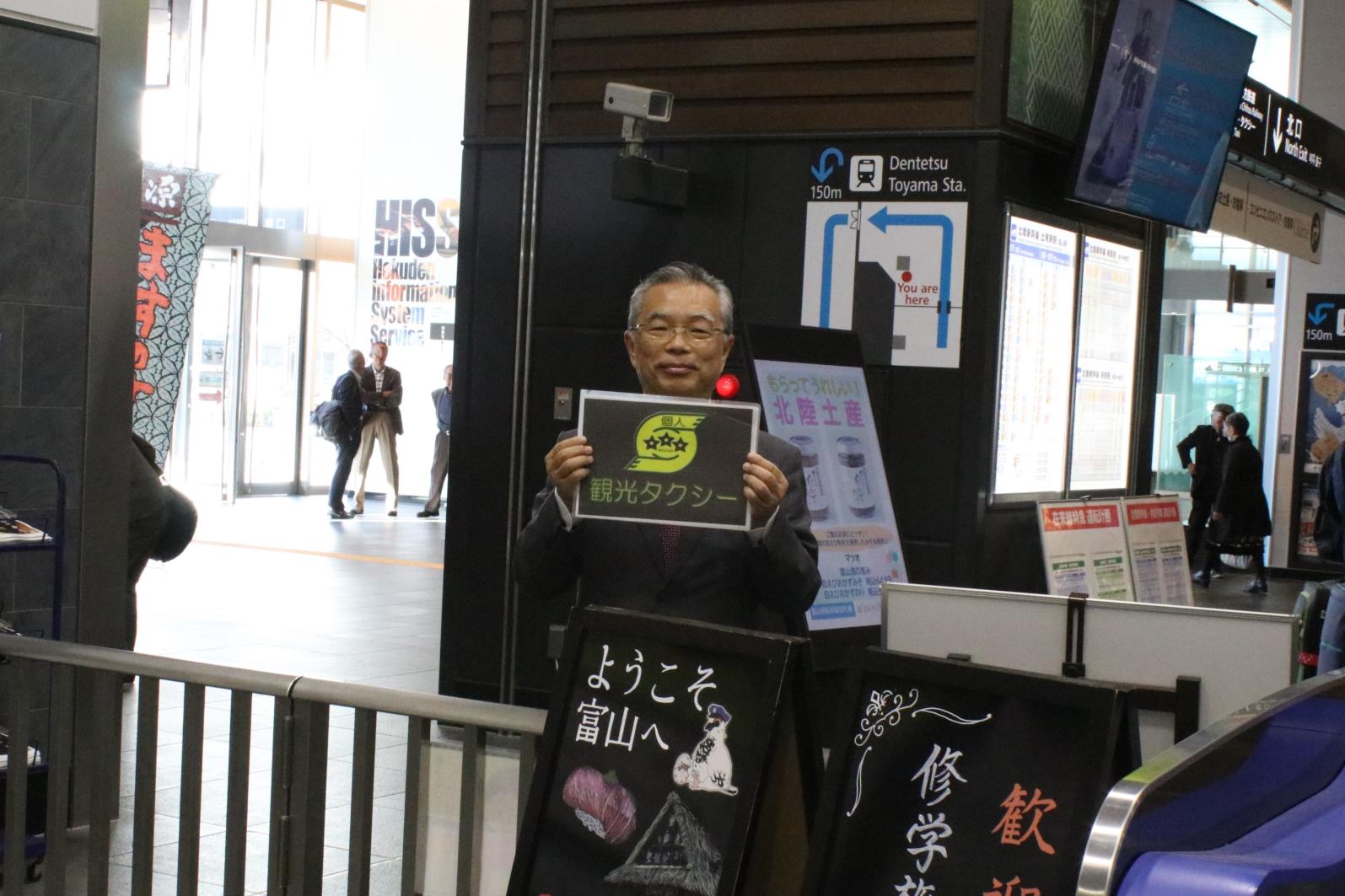 「おもてなし優良タクシードライバー」さんが、富山駅でお迎え