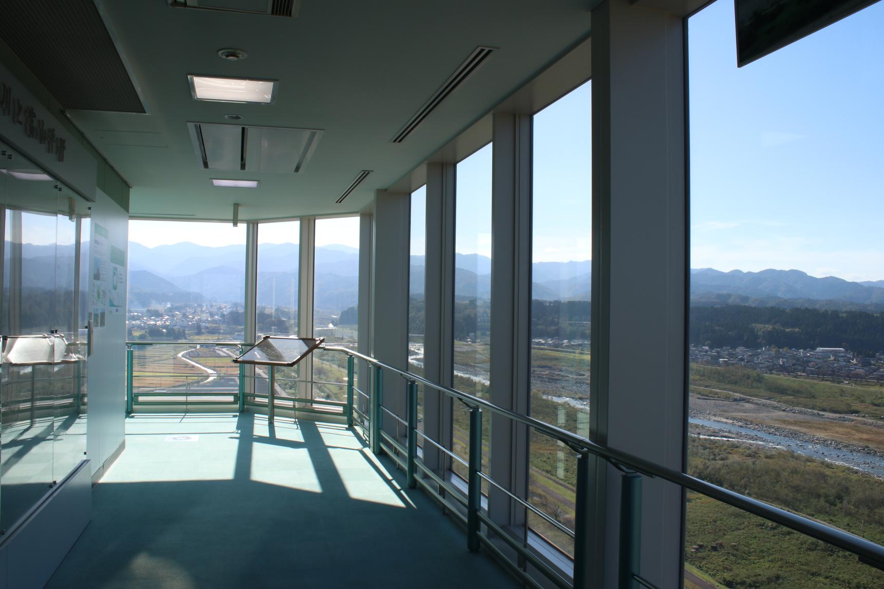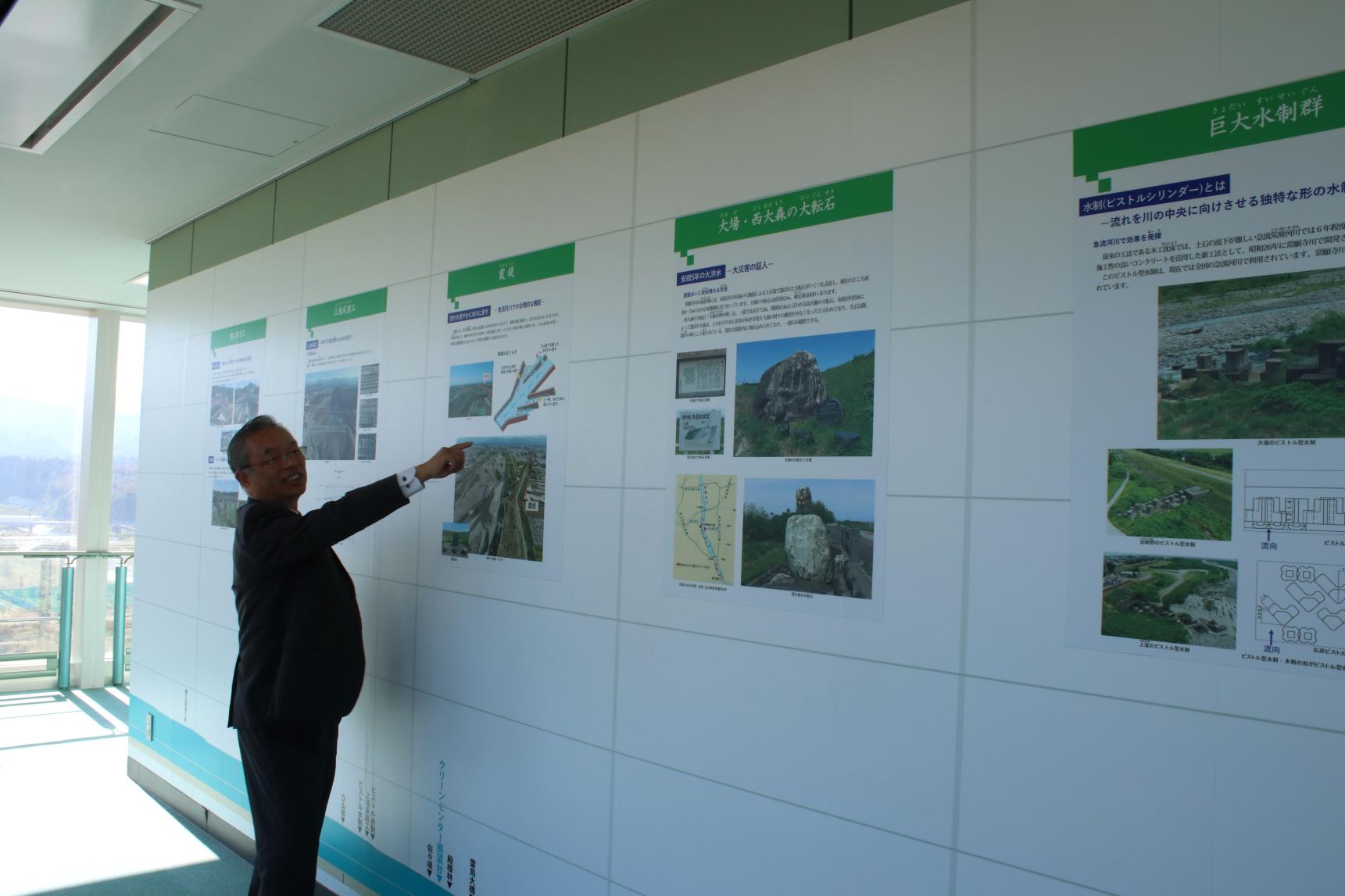 展望室には、地形の理由やこの地域の歴史の解説が書かれたパネルもあります。入部さんがパネルを見ながらいろいろ説明をしてくださり、さらに理解が深まりました!