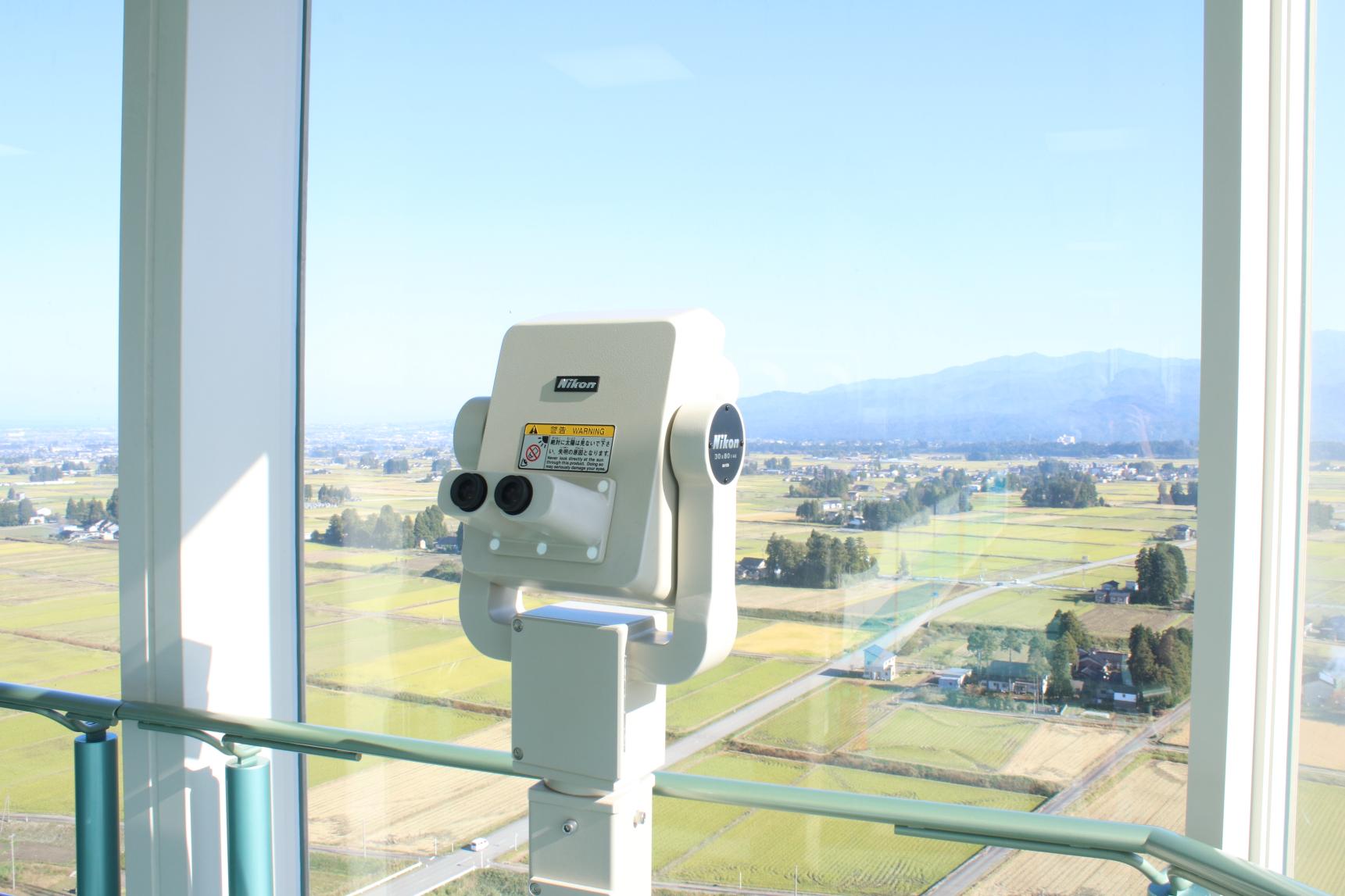 受付を済ませた後にエレベーターで展望室に向かいました。エレベーターを降りて見えたのは、まさに絶景! 展望室を一周回って見られるようになっていおり、富山平野も富山湾も立山連峰も見られるようになっています。