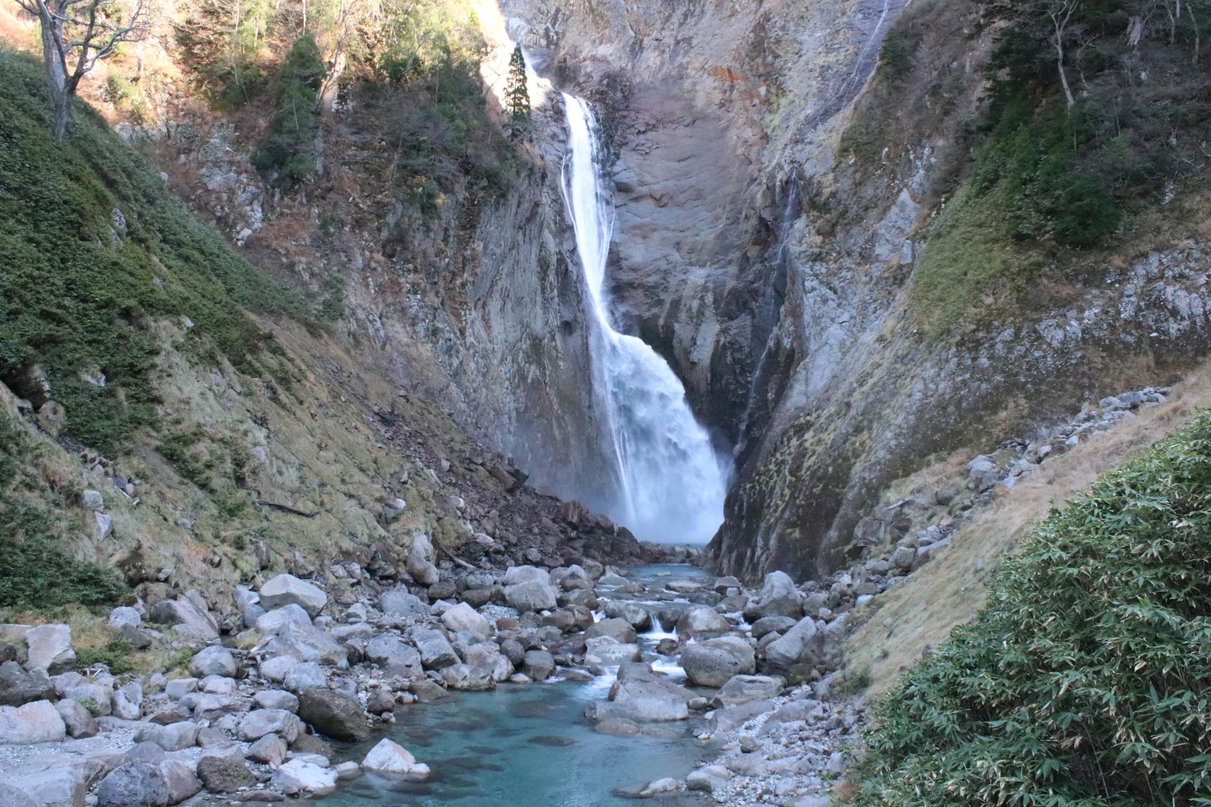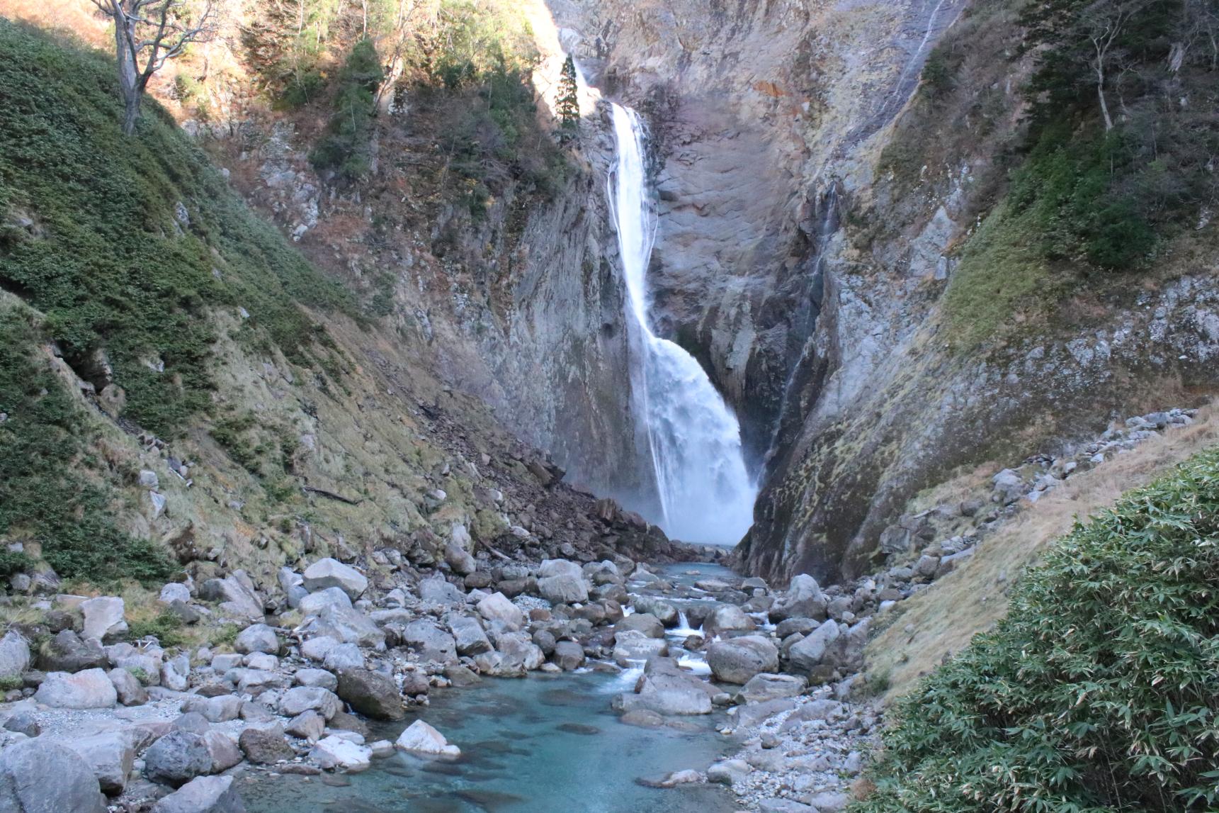 紅葉を楽しみながら上り坂を進み、ついに「称名滝」に到着! さすが、落差日本一を誇るだけあり音も実際の滝の流れも迫力満点。透き通った水の美しさ、滝の力強さを全身で感じ取りました。どの季節に行っても素敵な滝なのでぜひ一度、そして何回も訪れてみてください!