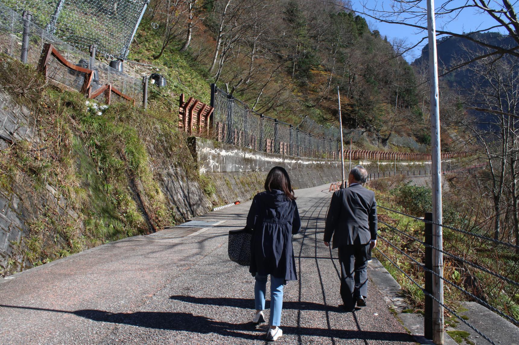 「称名滝」の駐車場からは、滝に向かう遊歩道を30分ほど歩きました。滝までの道のりも入部さんが一緒に歩いてくださったのでとても心強かったです。