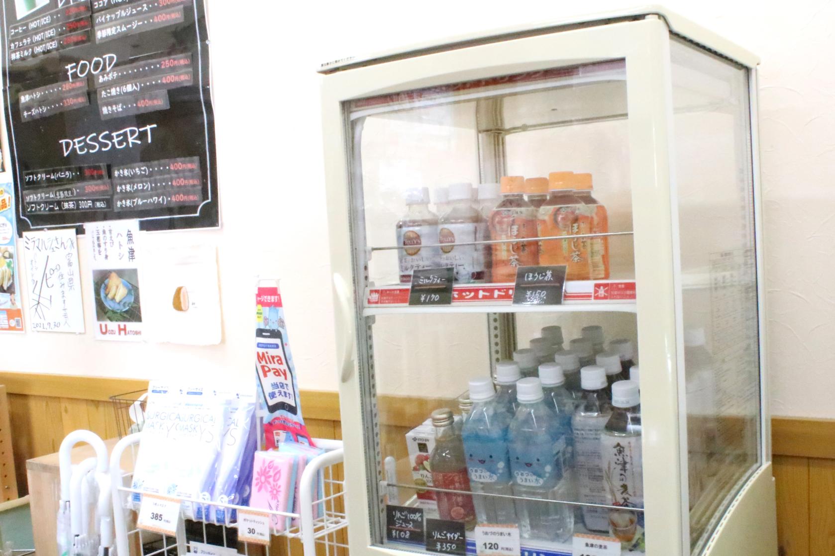 隣にある「ミラマルシェ」というお店では、ペットボトルの水が販売されています。魚津市内の地下水が入っているのですが、味が良いのはもちろん、魚津市のゆるキャラ「ミラたん」のラベルがかわいいので、お土産にぜひどうぞ!