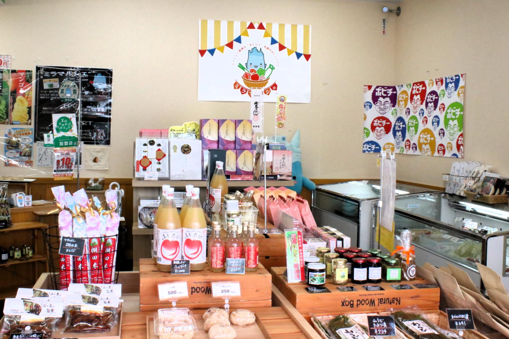 ミラマルシェでは、魚津市のお土産や、お茶、コーヒー、ちょっとしたおやつなどが買えます。湧水をくんだついでにぜひ立ち寄ってみてください。