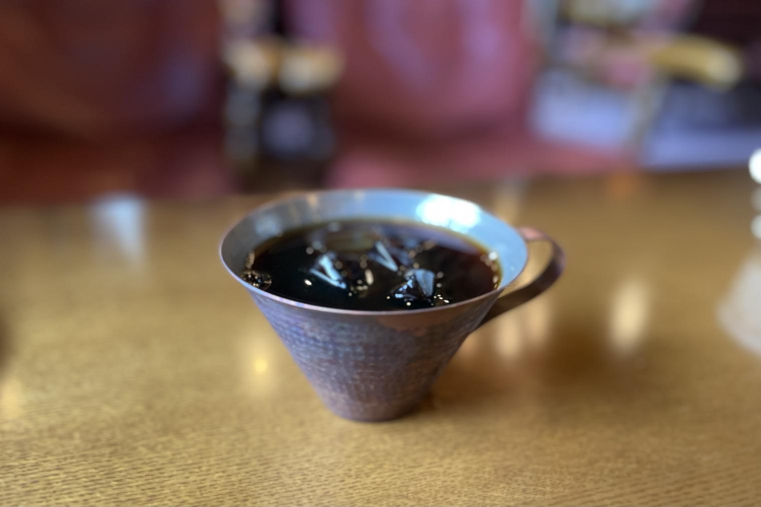 室堂駅に直結している「ティーラウンジりんどう」では、立山玉殿の湧水を使った水出しコーヒーが提供されています。美しい銅のカップに入った、湧水のスッキリ感と香ばしい匂いを楽しめるコーヒーは、まさに絶品。ホテルから見える景色の美しさや、落ち着いた室内の設えも相まって、豊かな時間を過ごせます。