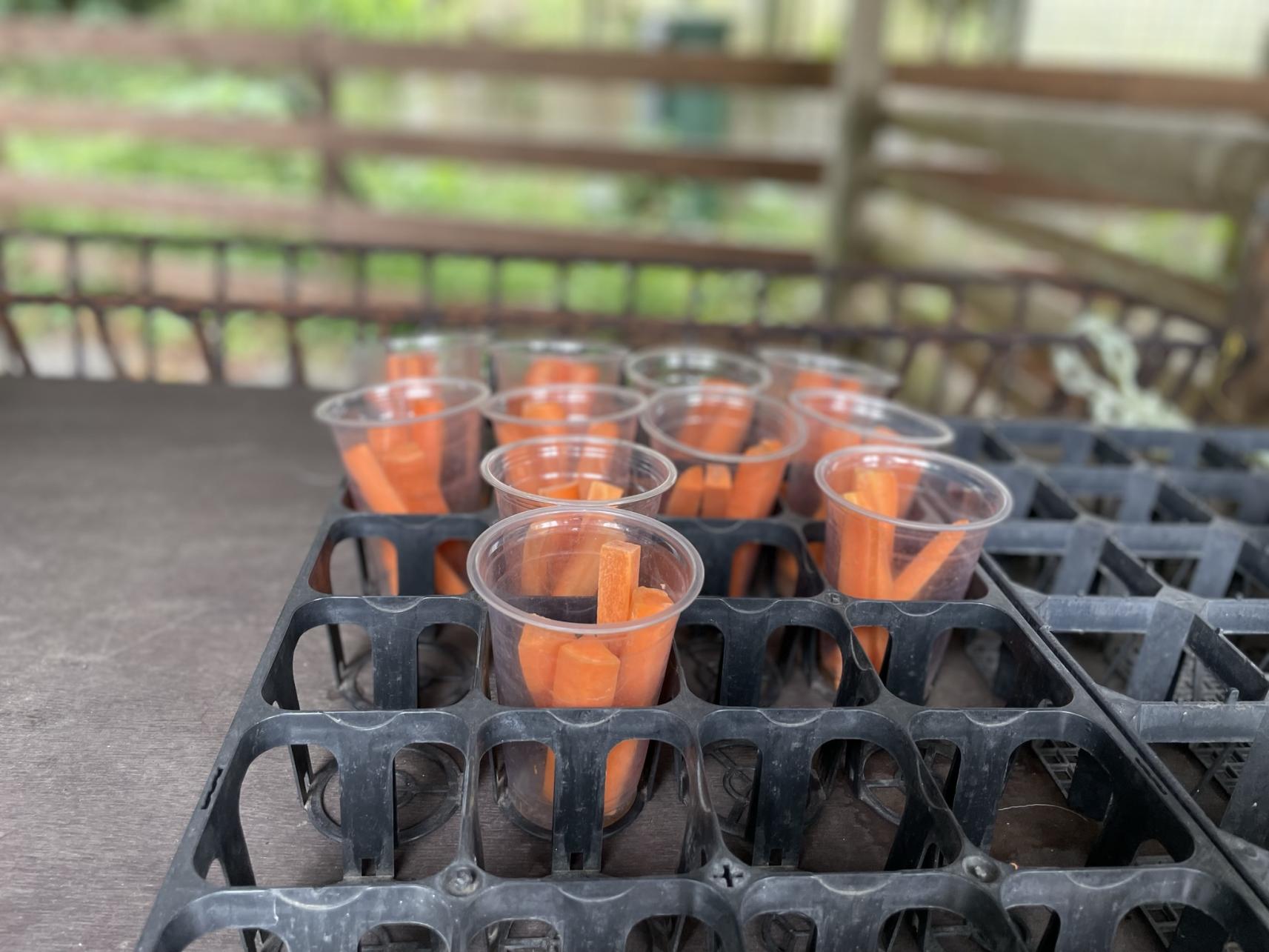餌を見せるとすごい勢いで近づいてきます。餌は1カップ100円で、なくなり次第終了します。