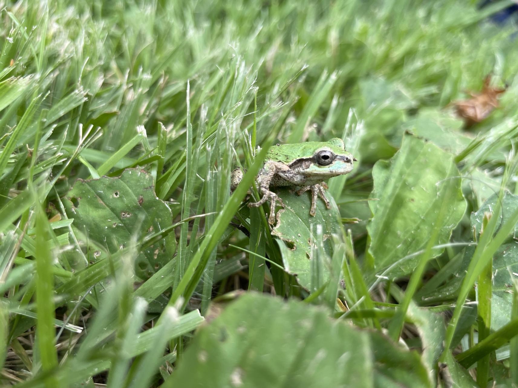 「ライチョウ舎」の近くの芝生広場は、芝生食堂やトイレ、遊具もあるので、食事や休憩にぴったりの場所です。季節に応じてアマガエル、トンボ、バッタなどの生き物がいるので、探して観察するのも楽しいですよ。