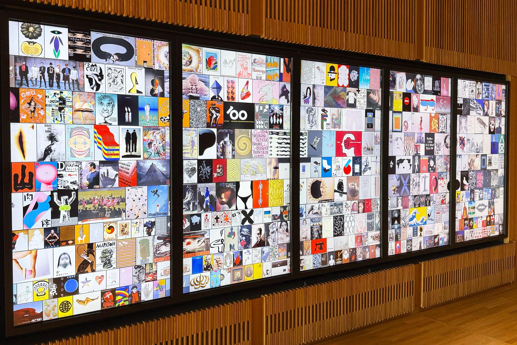 キッズルームの向かいあたりにあるポスタータッチパネルでは、約3,500点のポスターが見られます。