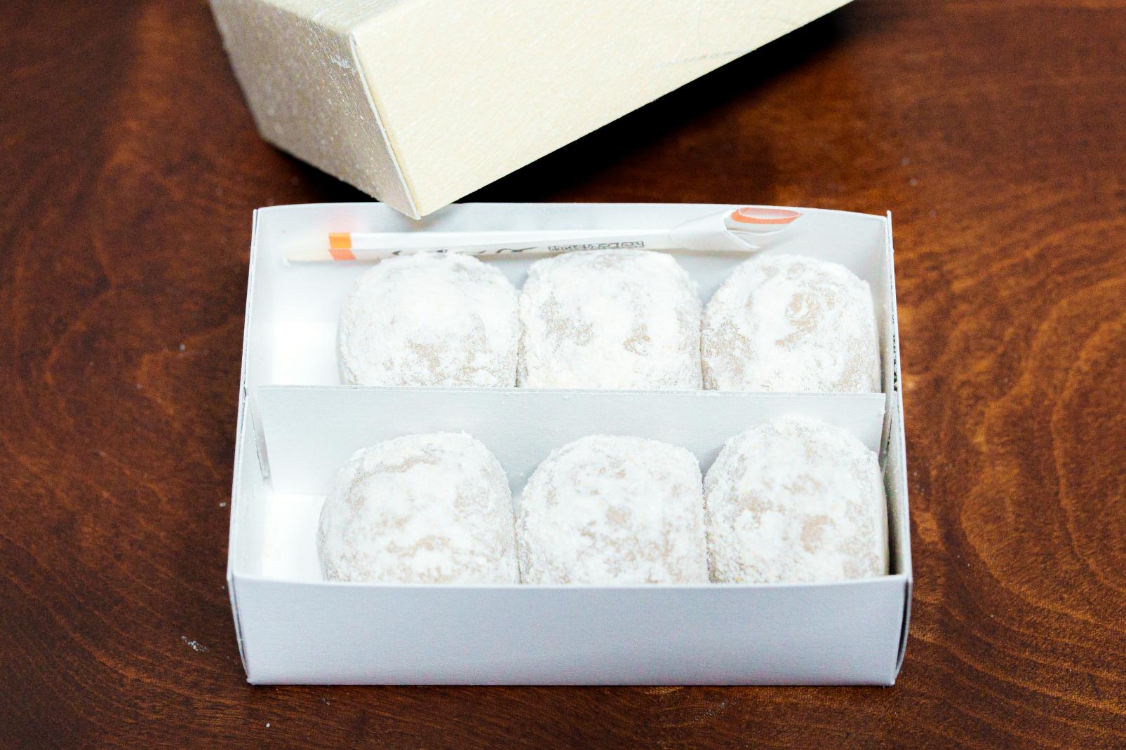 柔らかい食感で、表面には和三盆糖がまぶされており、口の中に程よい甘さが広がります。