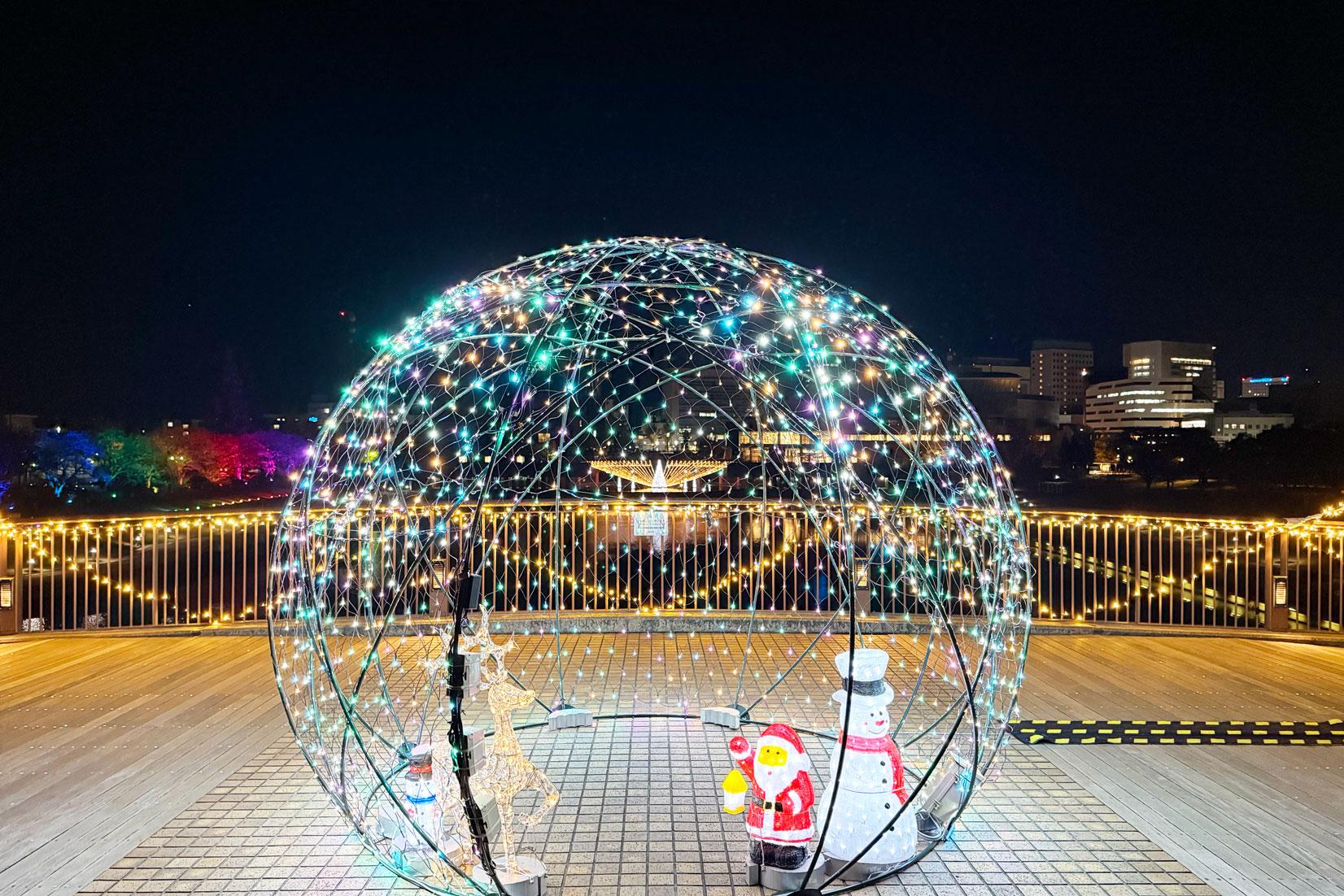 天門橋の中央には、クリスマスイルミネーションのドームが設置されています。