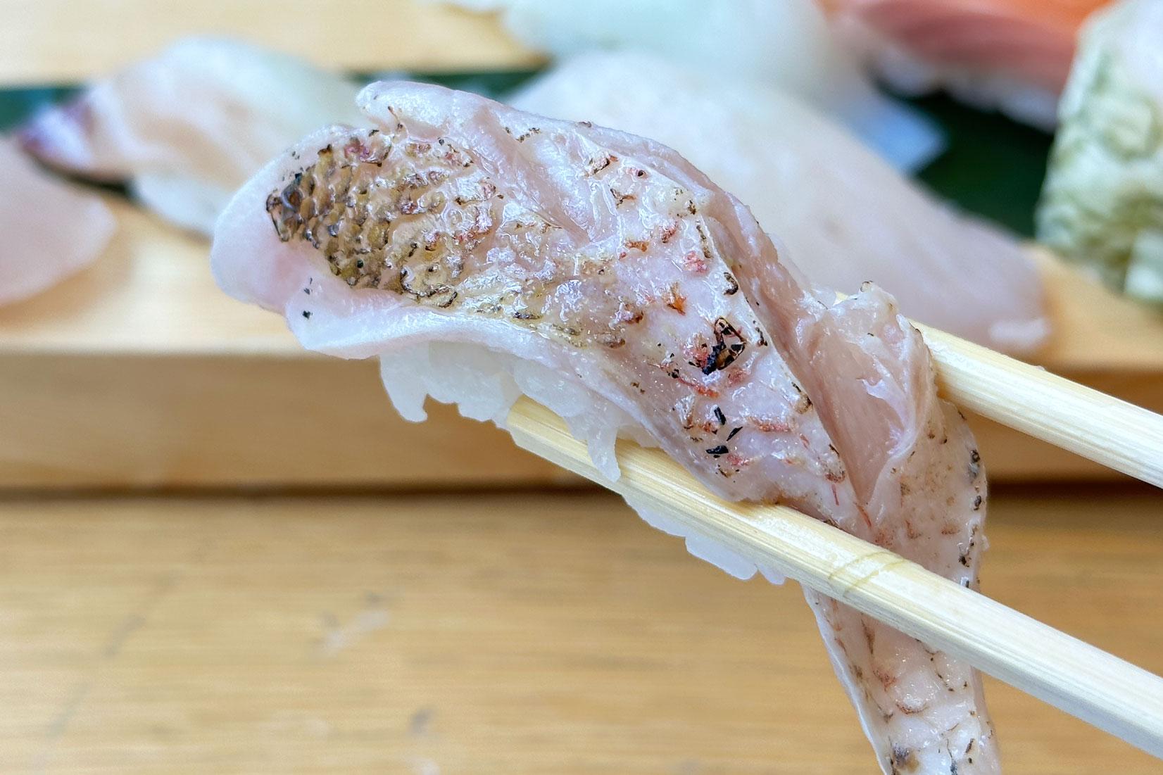 この日の富山湾鮨のネタの中で一番豪華&高価なのは、ノドグロの炙りの握りでした。