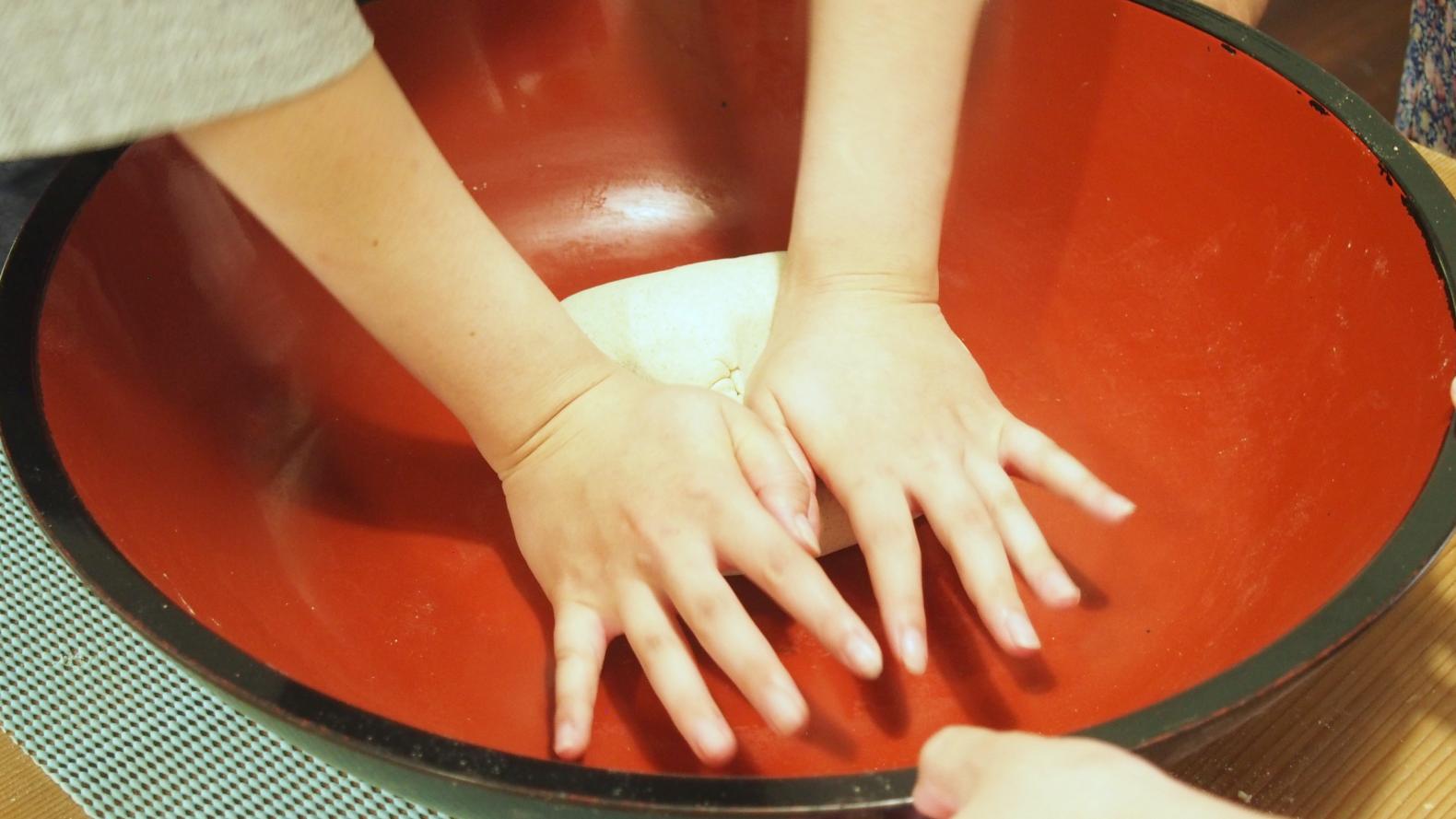 粉をまぜる、こねる、のばす…なんだか子どものころに図工で粘土作品を作っていたころを思い出す。