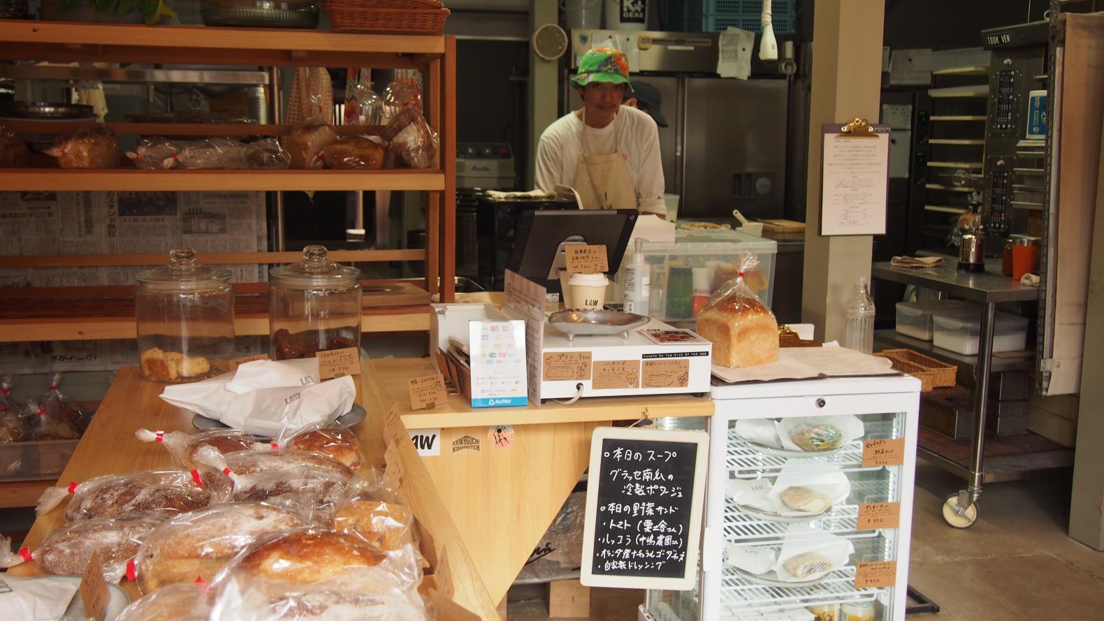 まず最初に訪れたのは、2023年4月にオープンした、ベーカリーカフェ【LAW】。店内には数種類の自家製酵母を使用し、パンそれぞれの味わいを追求した商品が豊富に並んでいます。