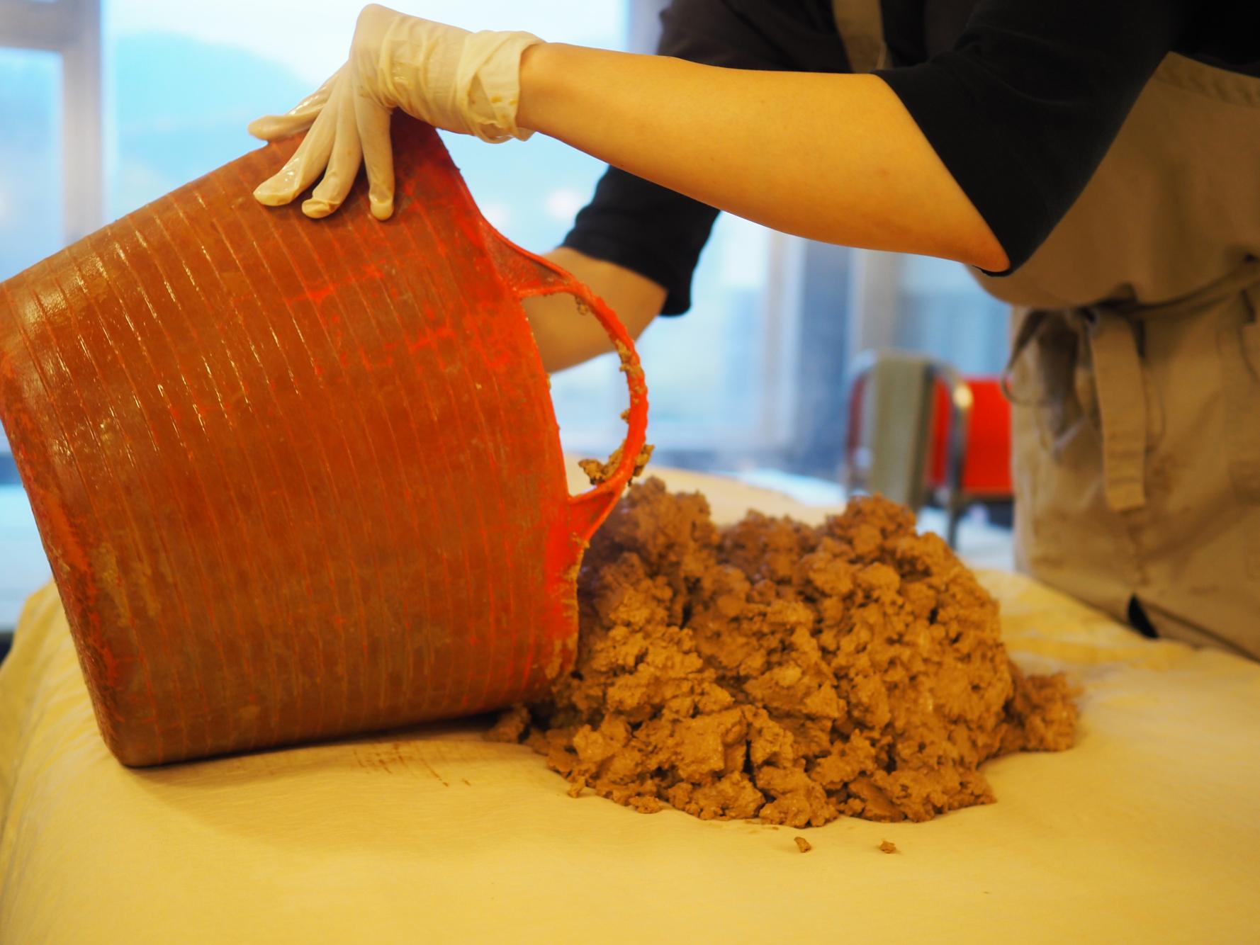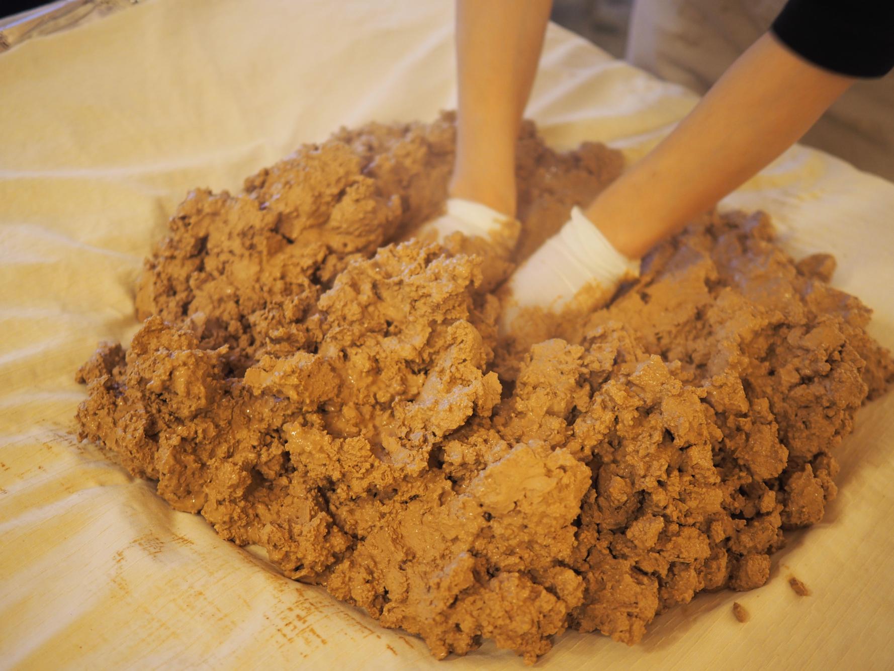 一回のビオファンゴで使用される泥は、なんと合計12㎏!さっきまでかけ流しの温泉に浸かっていた泥は、しっかりと温かみがあり、体中に熱が伝わってくるのを感じます。