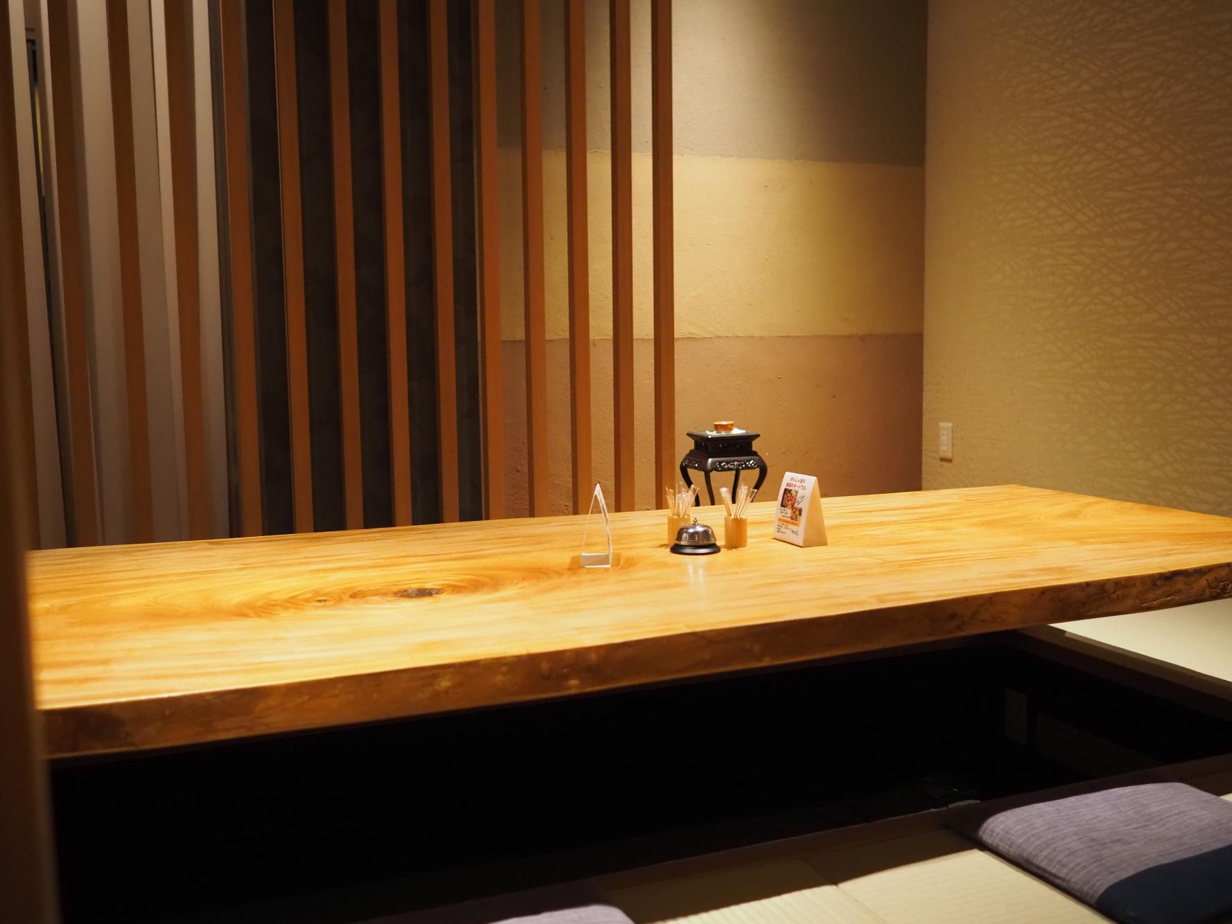 店内は黒を基調とした落ち着いた内装。テーブル席や大人数でも利用できる個室もありますが、今回は、オーナーのお話を聞きながら食事とお酒を堪能したいと思い、カウンター席をチョイスしました。