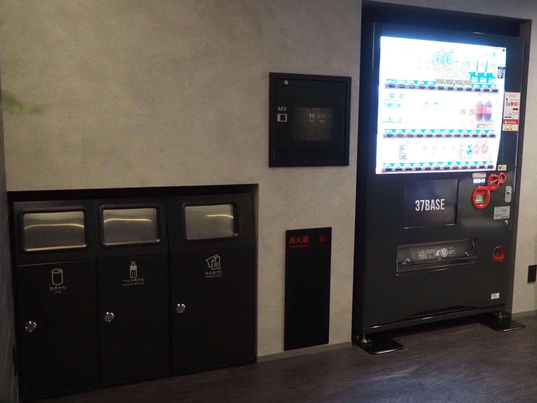 ゴミ箱や自動販売機、そしてなんとAED置き場など、細かいところまでこだわりつくしたインテリアは、ラグジュアリーな印象が追求されたおしゃれな空間になっています。