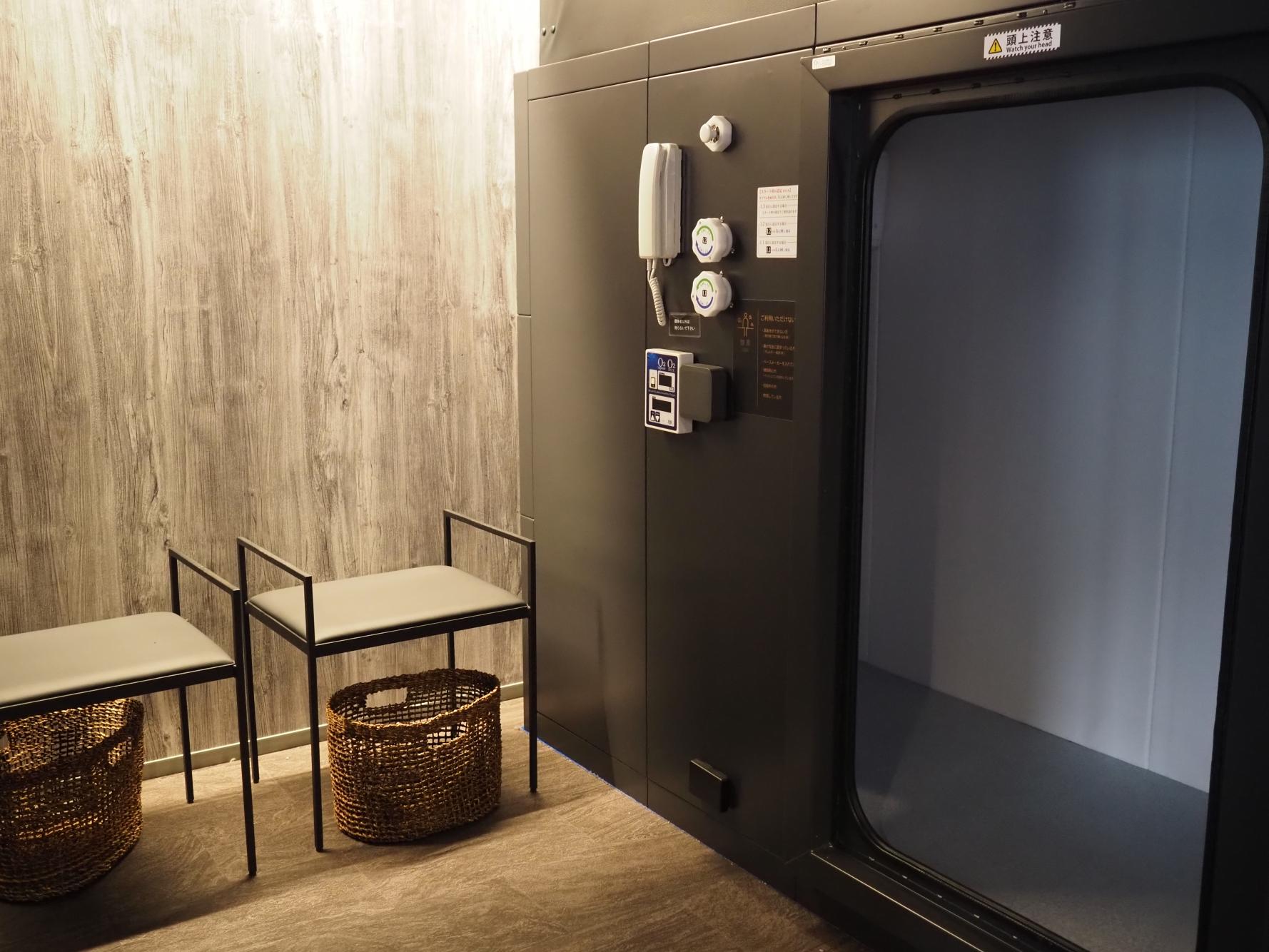 専用のBOXの中に入り、高濃度の酸素空間を体験するリラクゼーションです。ストレス緩和や脳の活性化の効果があるとのこと。衣服のままでも入れるので、気軽にリフレッシュしたいときにおすすめです!
