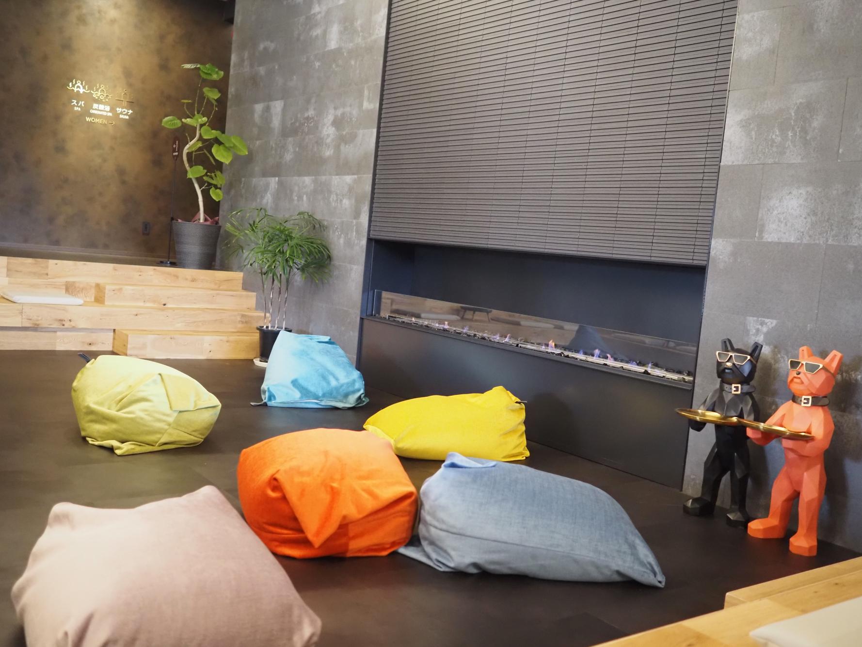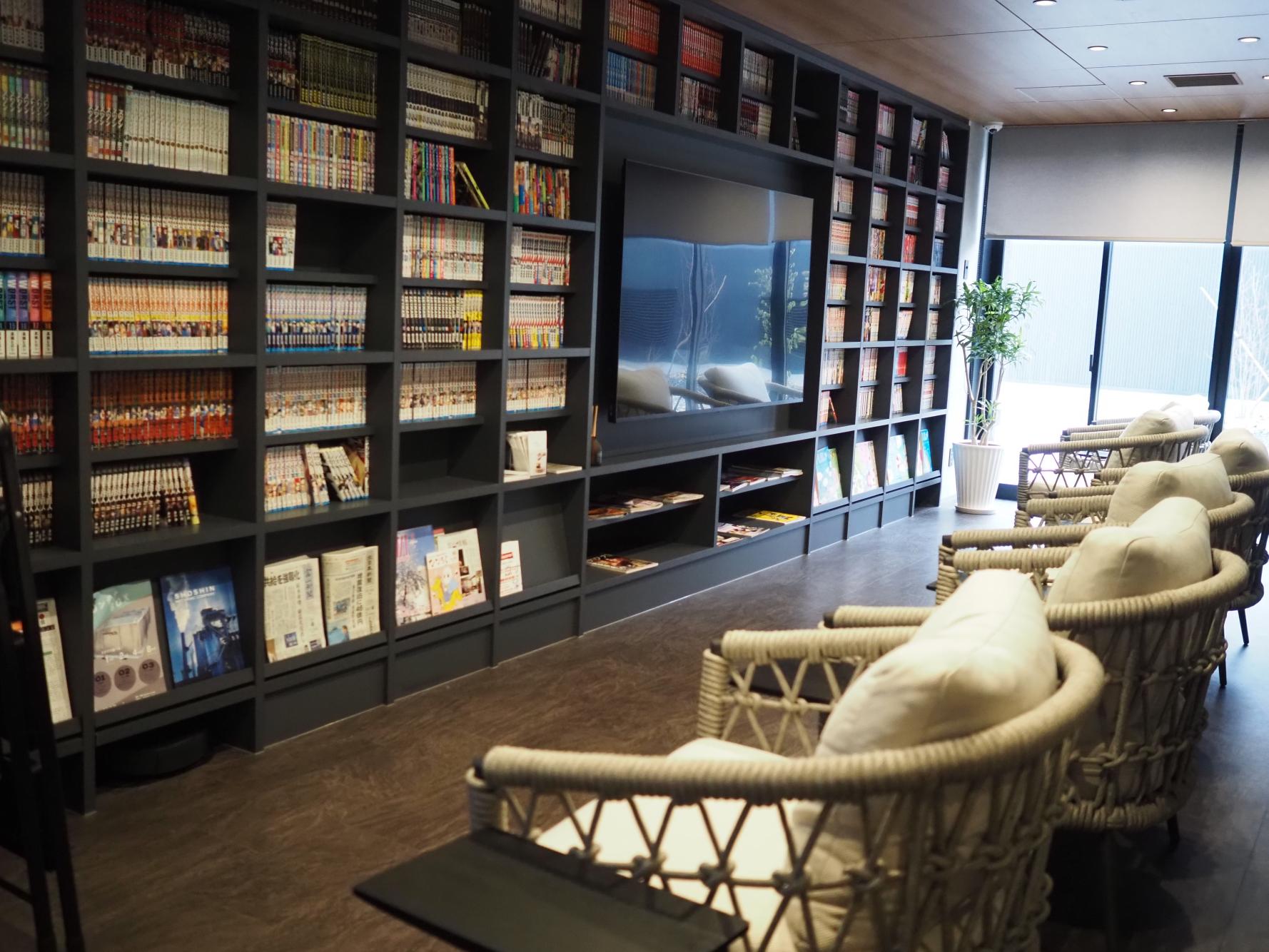 大きなテレビや棚にびっしりと詰まった漫画や雑誌があり、それぞれのリラックスタイムが楽しめます。ふかふかのクッションが心地よい椅子に座ると、時間を忘れて過ごしてしまいそうな予感。