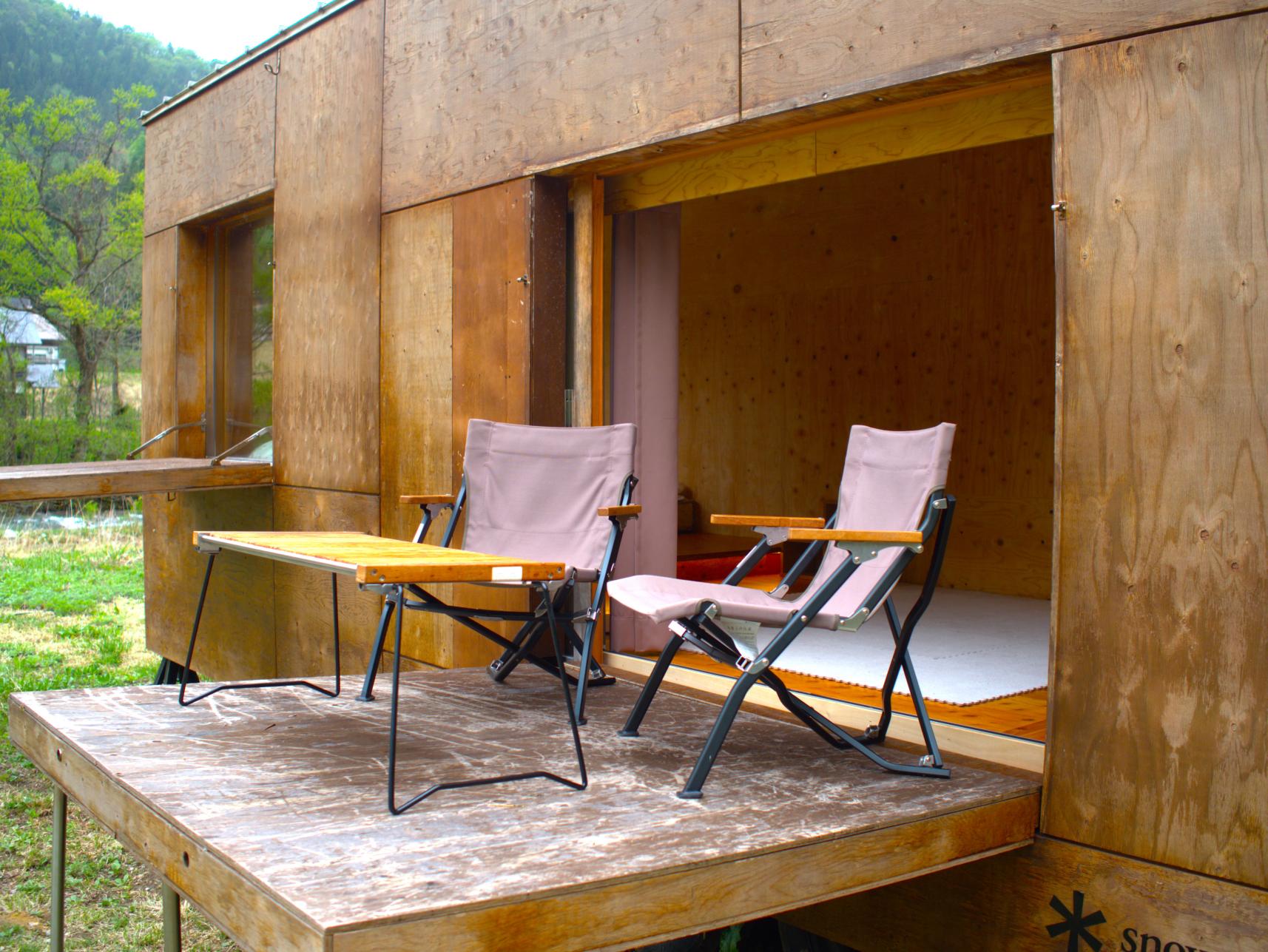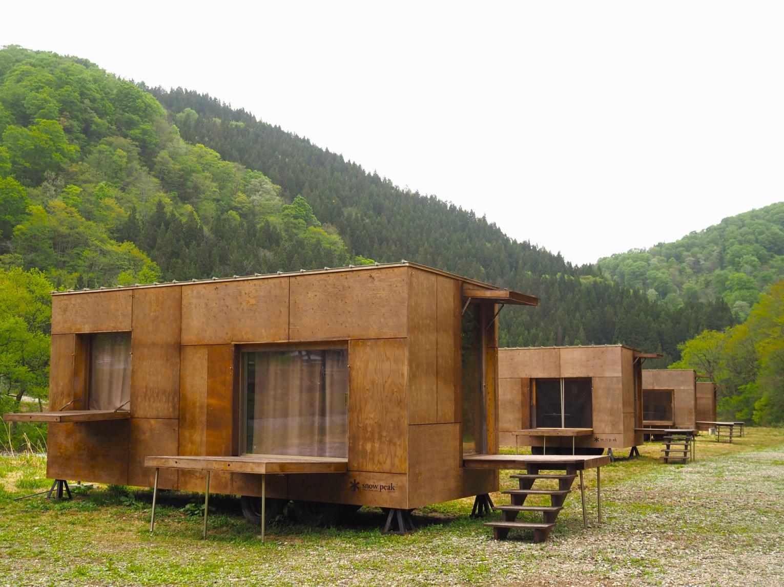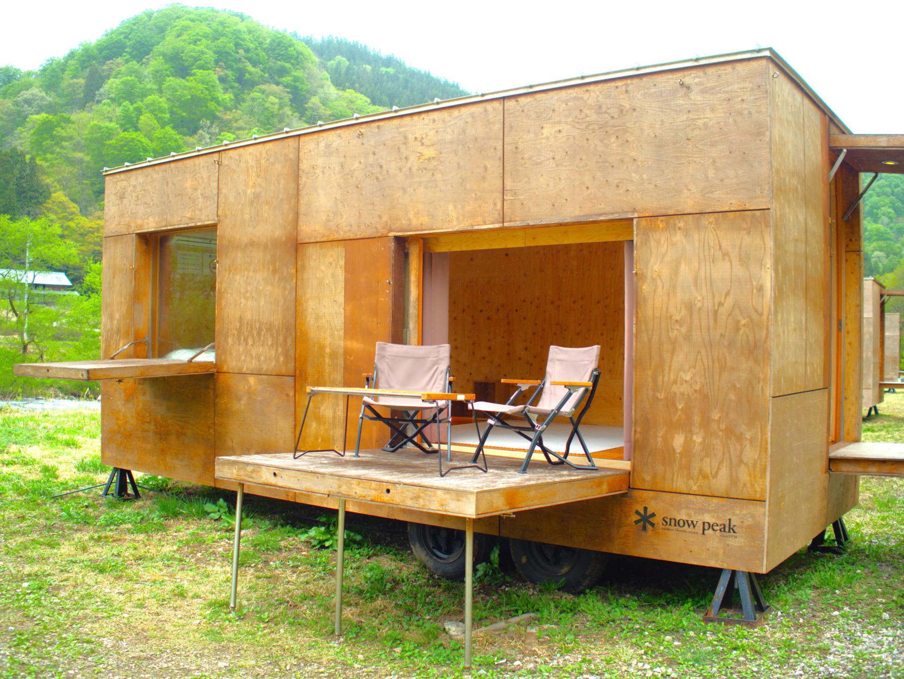 種類豊富な施設環境の中でも、特にイチオシなのが、国立競技場を設計した建築家、隈研吾氏とアウトドア用品メーカーの「snow peak」が合同で開発した、トレーラーハウス「住箱」。