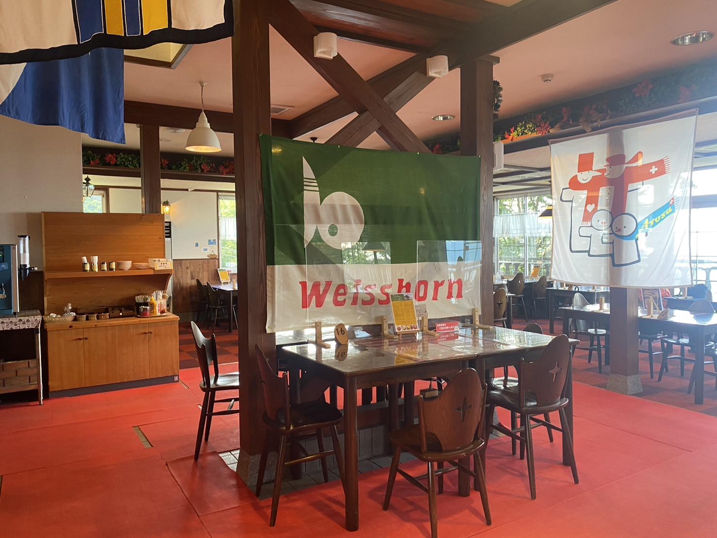 お散歩にちょっと疲れたら、IOX-AROSAの頂上にあるレストラン「ワイスホルン」で休憩を。
