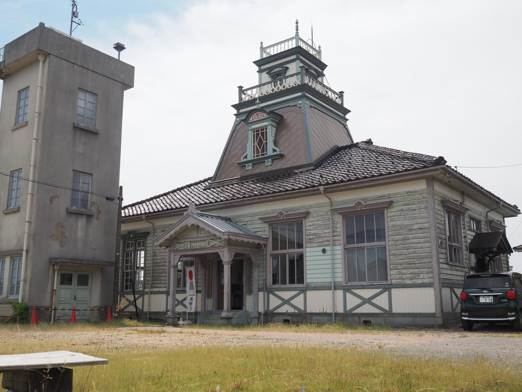 坂道の中ほどを歩いていると、趣のある洋風の建物が見えてきます。こちらは高岡市伏木気象資料館(旧伏木測候所)。