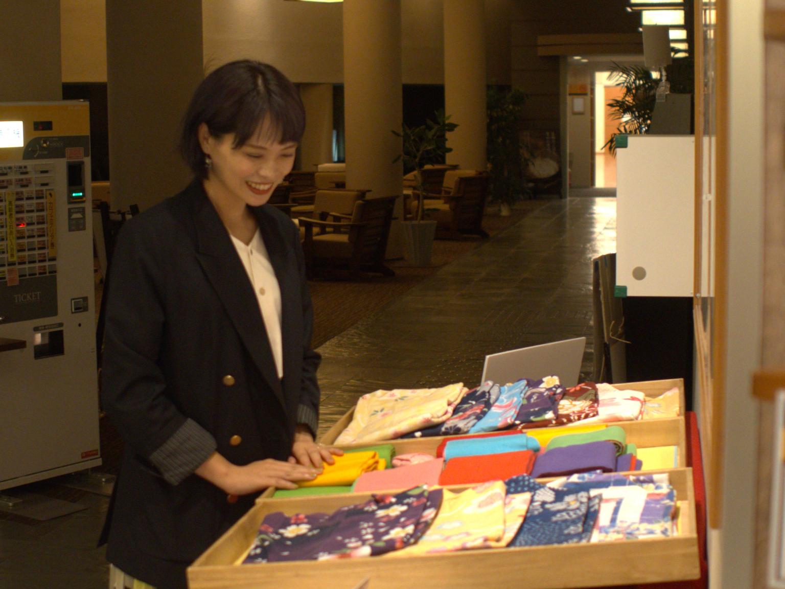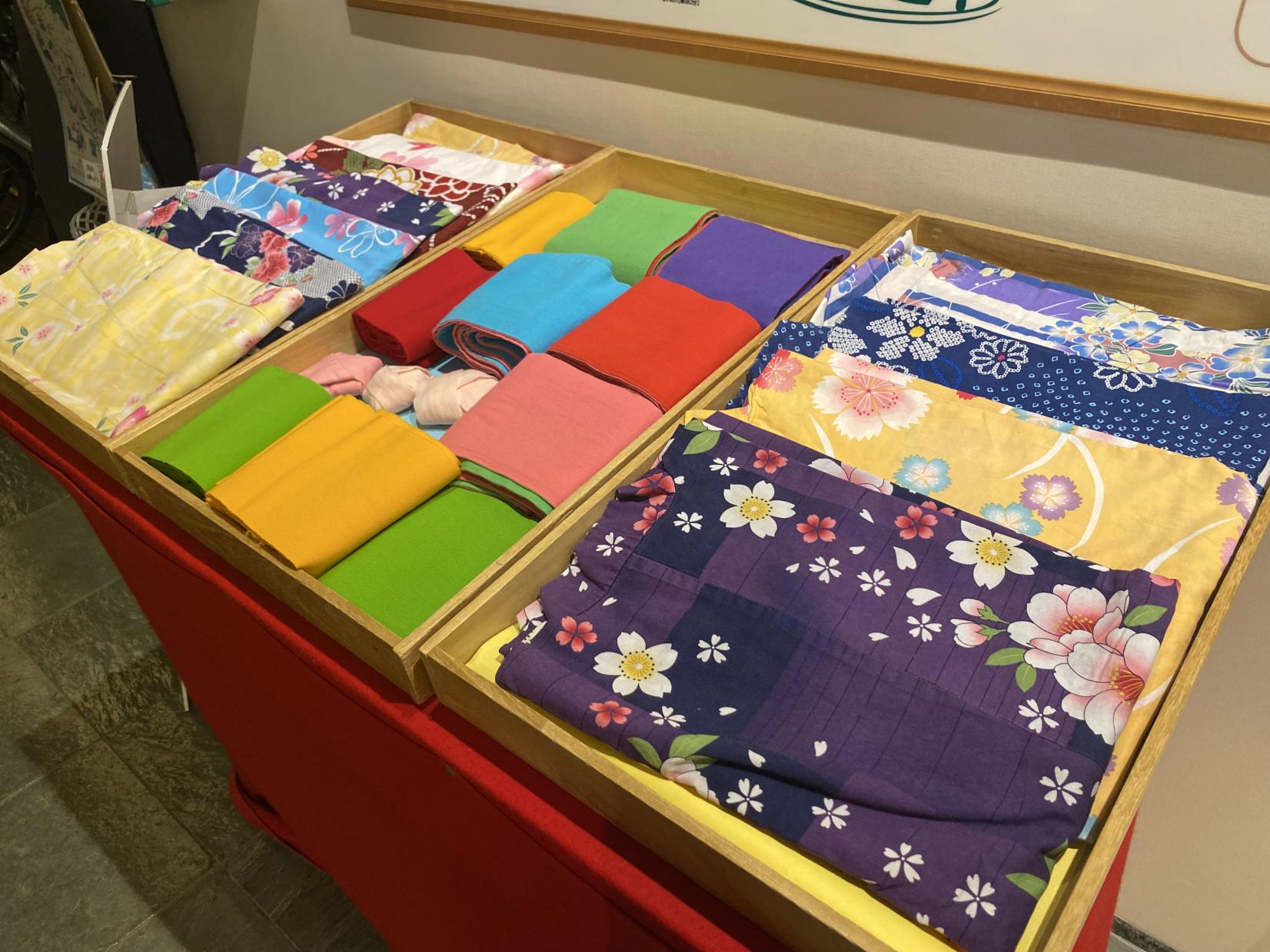 色とりどりのかわいい浴衣や、さまざまなアメニティの無料貸し出しコーナーが充実していました。