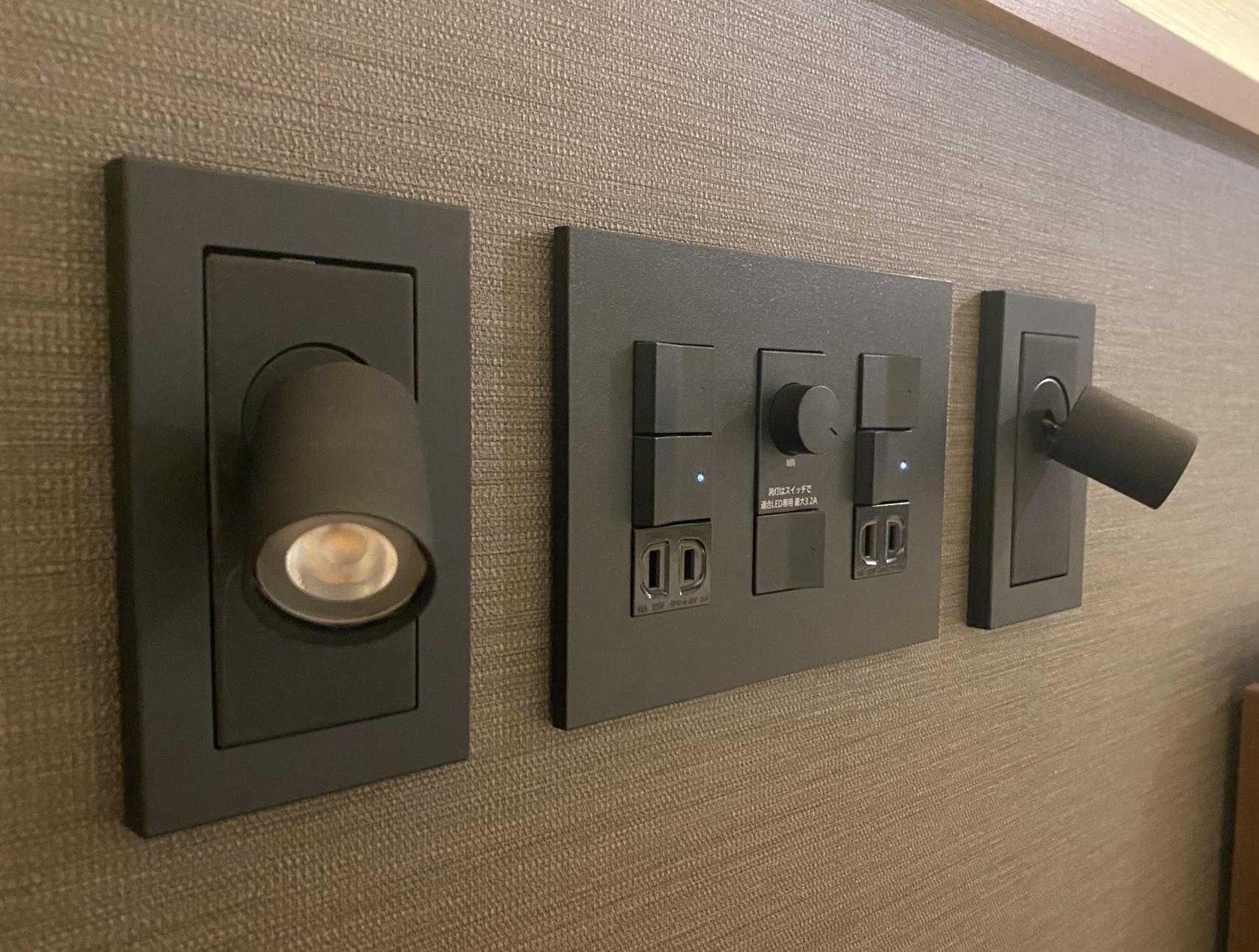 各種充電器や枕もとのライト、コンセントなど、宿泊する人のことを考えた使いやすさが細やかに感じられるのも嬉しいポイント。