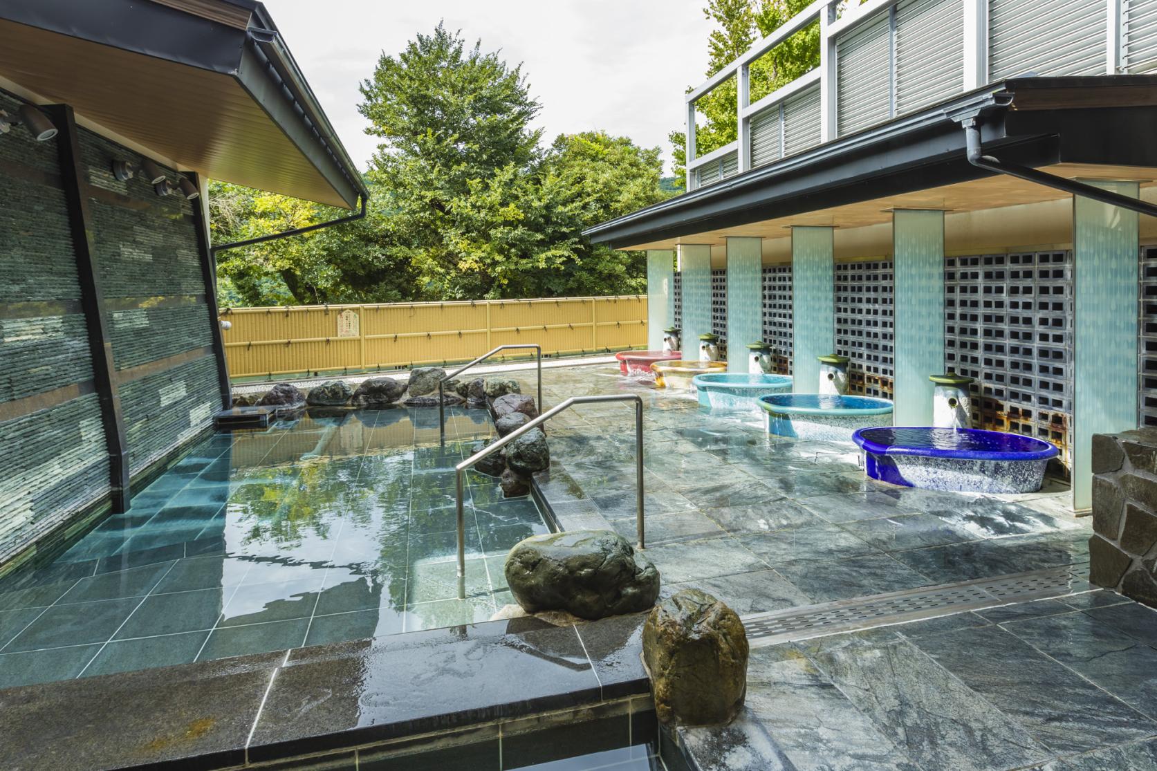 広々とした露天風呂には、岩風呂やつぼ風呂などが。
