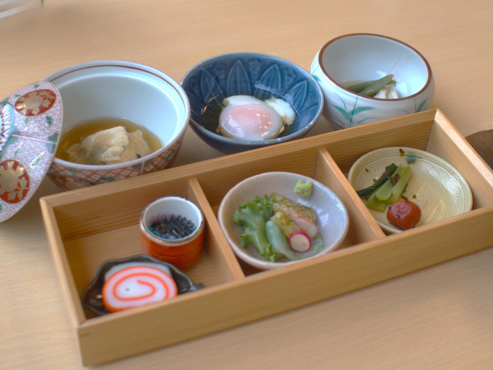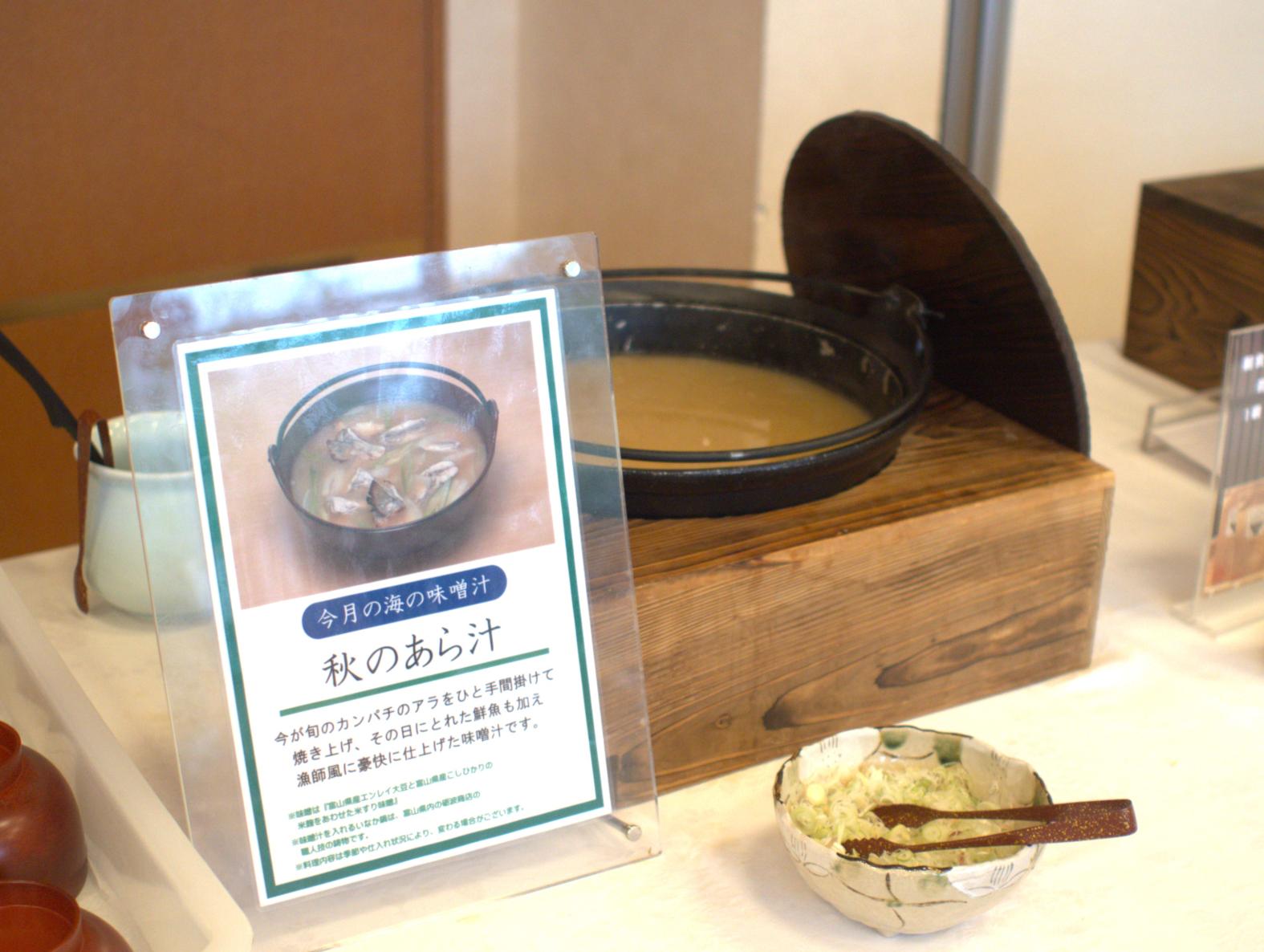 朝食では、地元の農家さんを中心に、富山市の生産者さんこだわりの食材がずらりとならんでいました。