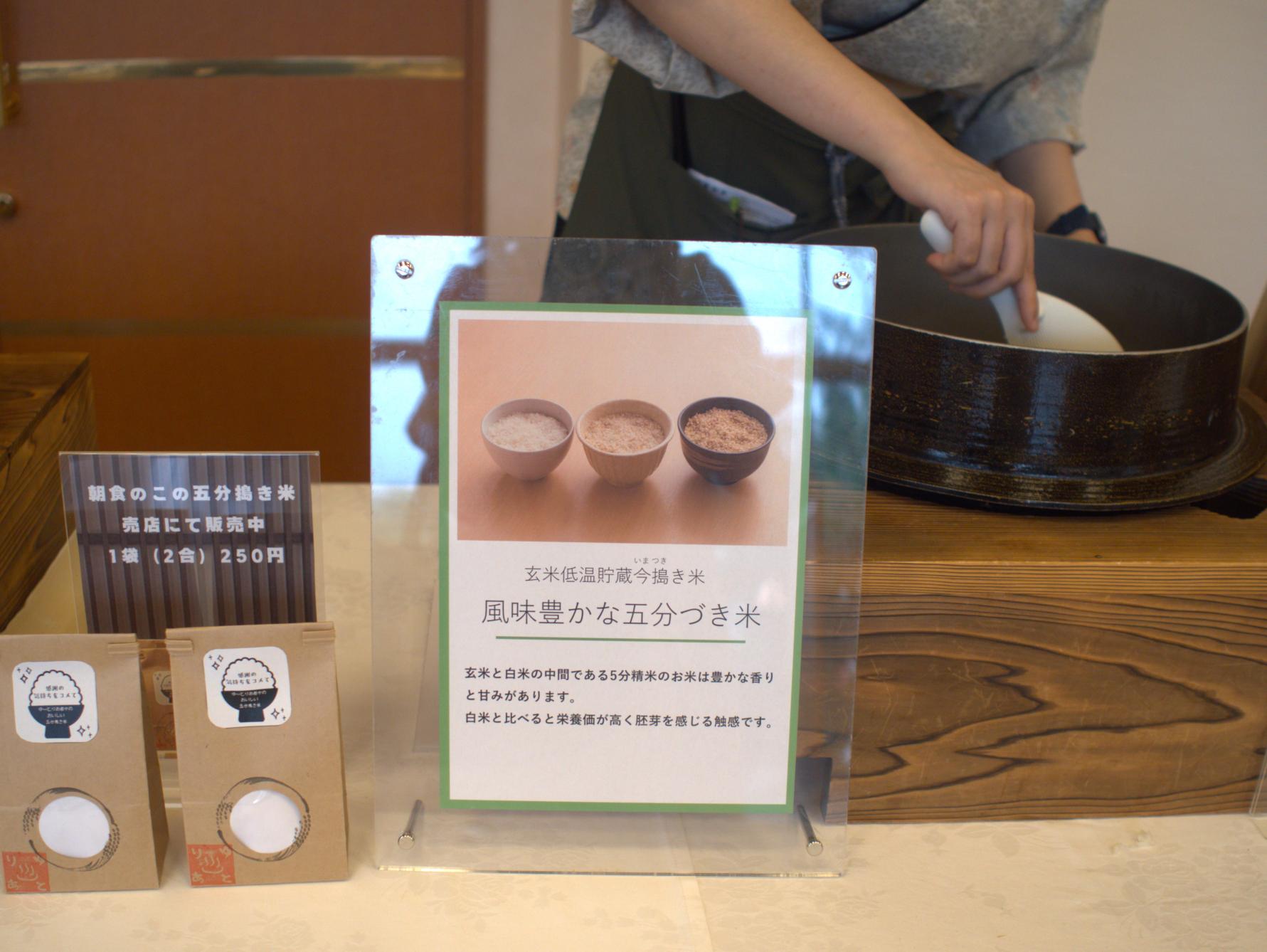 その中でもイチオシなのが、富山市大沢野地区にある営農組合で栽培されたコシヒカリ特別栽培米。朝食時に必要な分だけを五分搗(つ)きに自家精米して、炊き上げているそうです。