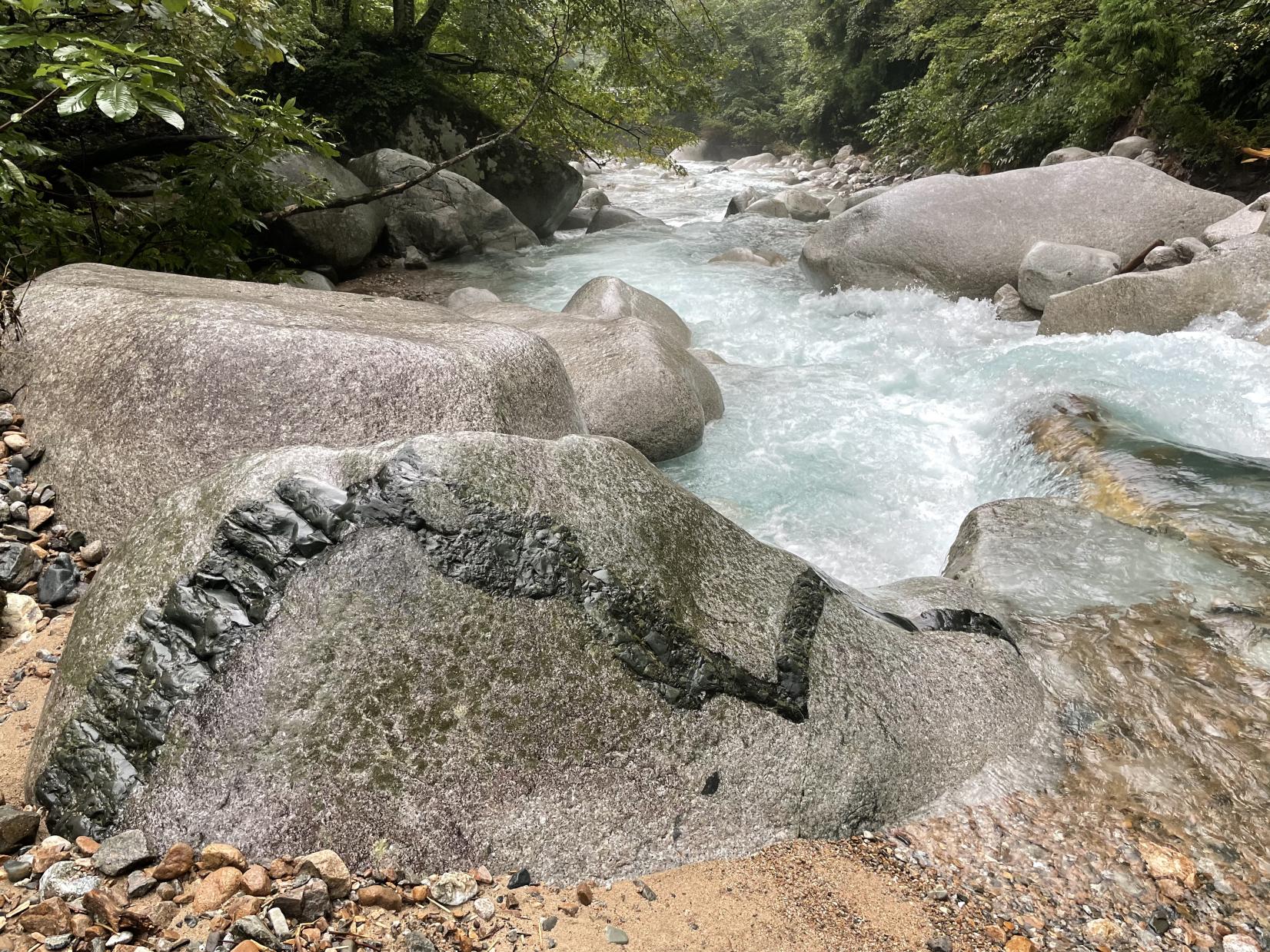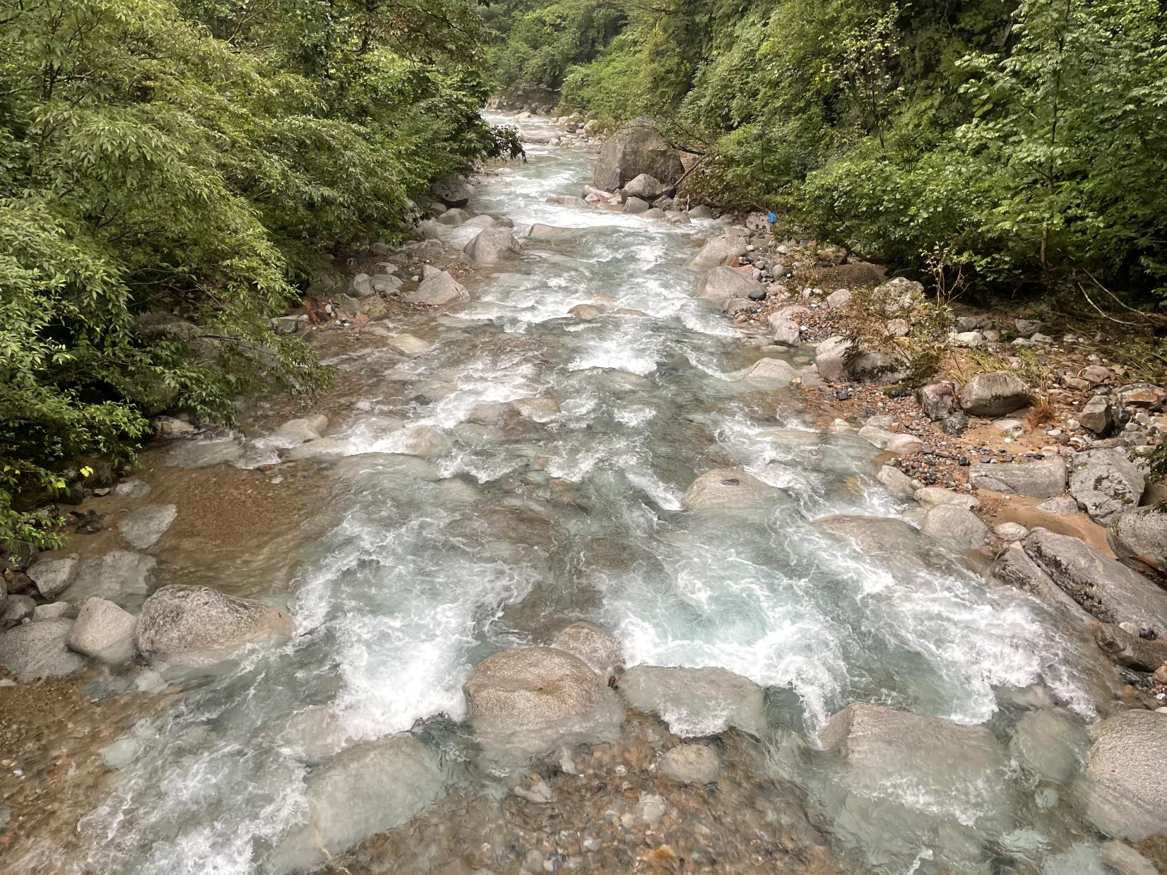 道中の片貝川。雨の日が続いていたにもかかわらず水がきれいです。
