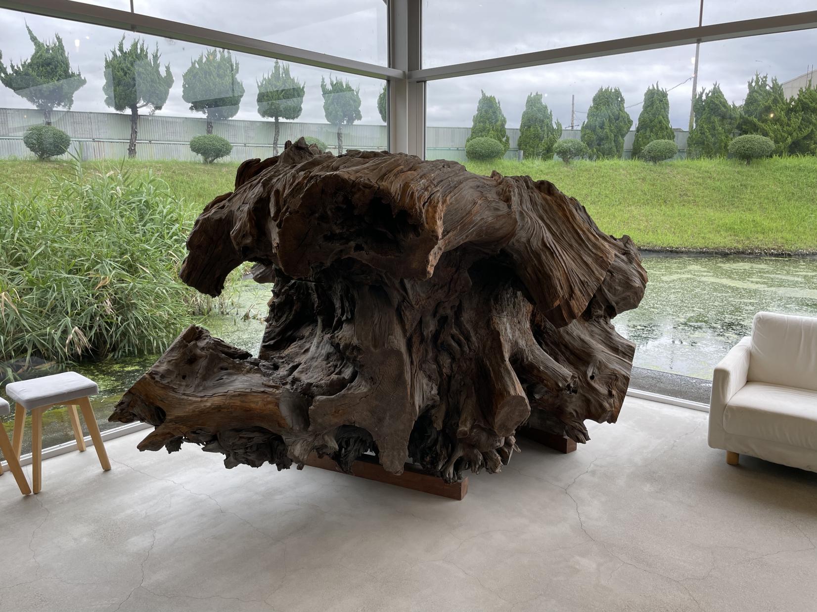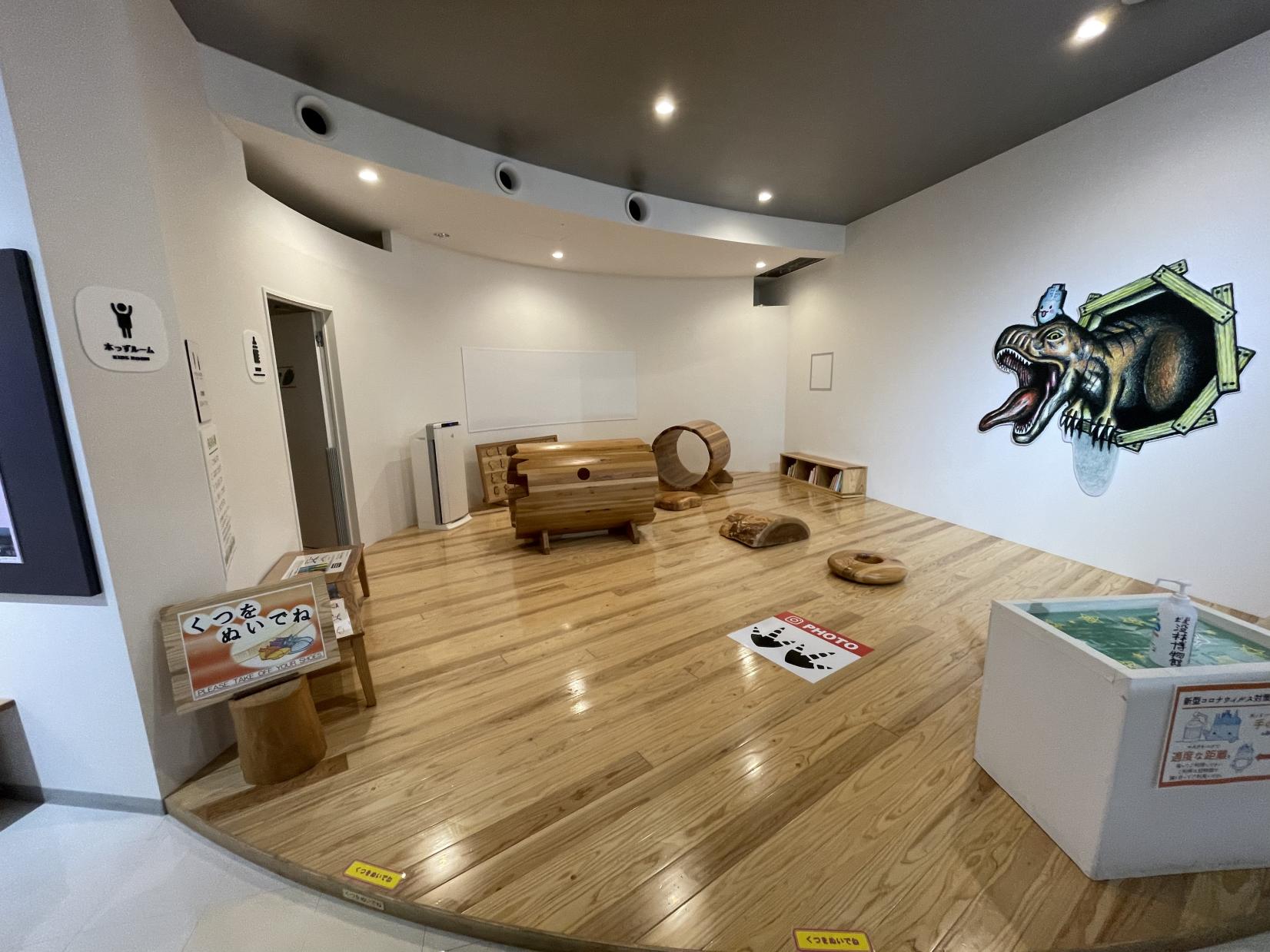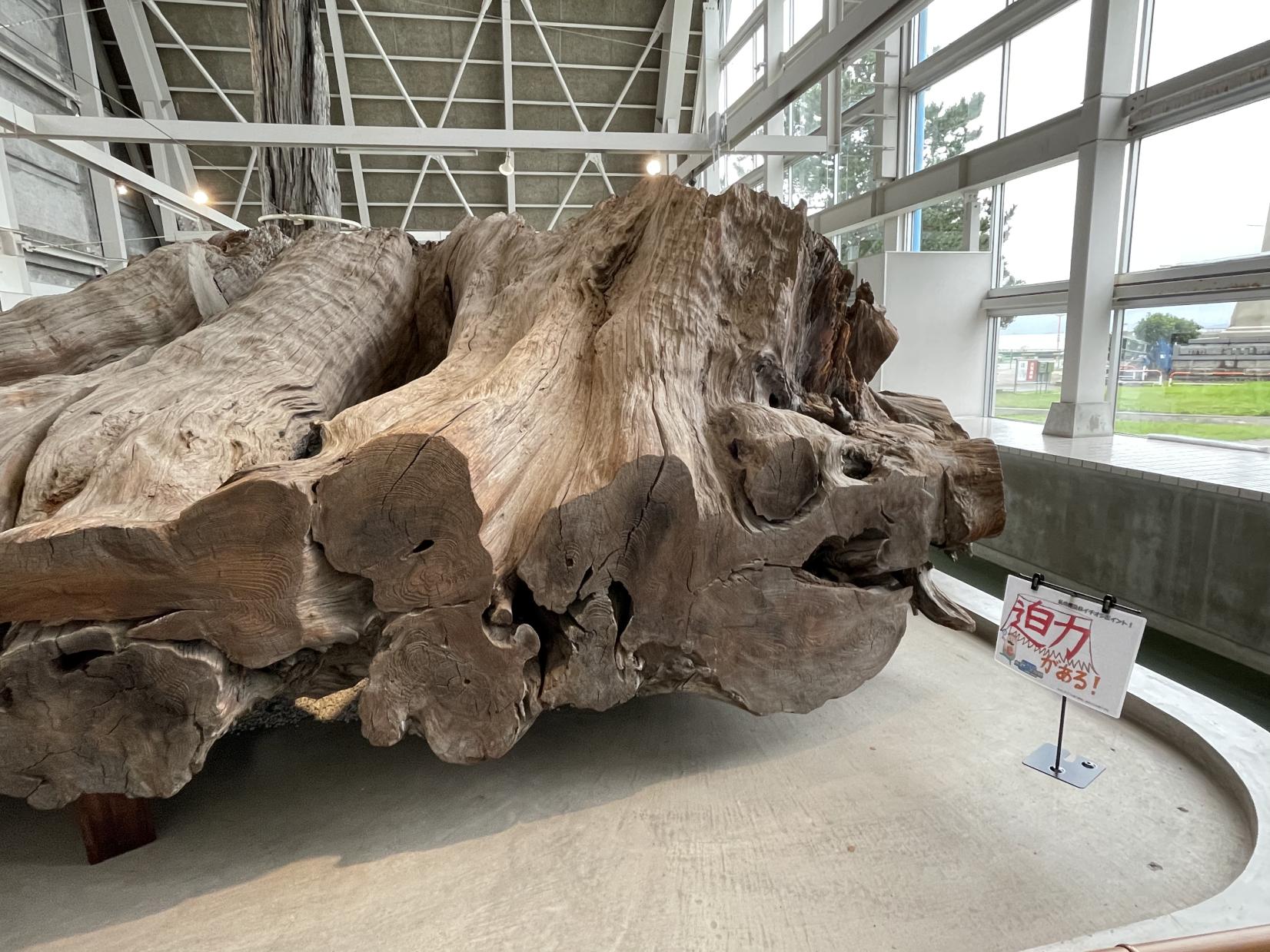 「水中展示館」のお隣「乾燥展示館」では埋没林に触ることができます。