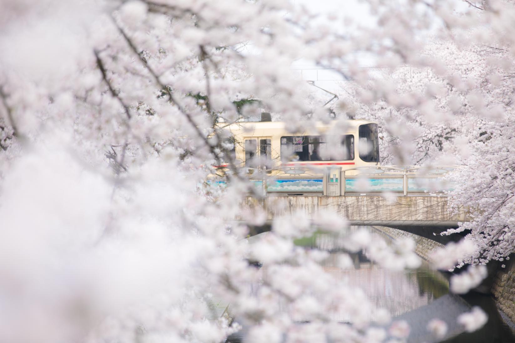 富山市中心部を流れる松川沿いに約2.5kmにわたって桜並木が続いており、満開の時期に遊歩道を散歩すると、とても晴れやかな気持ちになれます。
