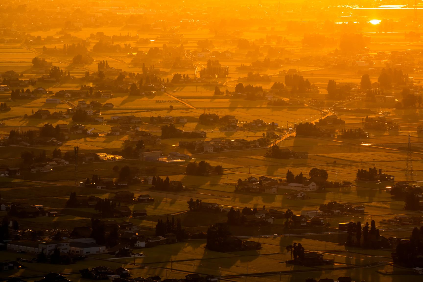 夕焼けの散居村として砺波市の散居村展望台からの展望が有名ですが、南砺市の医王山にある展望スペースからは朝方にも水鏡が見られます。運が良ければ、雲海と水鏡のコラボの絶景が見られます。散居村については別の記事「5月限定の絶景!散居村の美しい風景」でも紹介しているのであわせてご覧下さい!