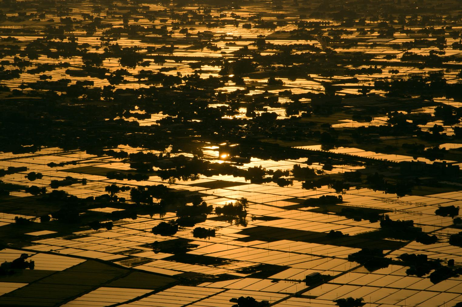 水田が色づき輝く様子は、まさに絶景です。時期としては5月上旬~下旬となります。(ただし、稲が育ちすぎているときれいな水鏡とならないので、個人的には5月上~中旬頃がベストです。)