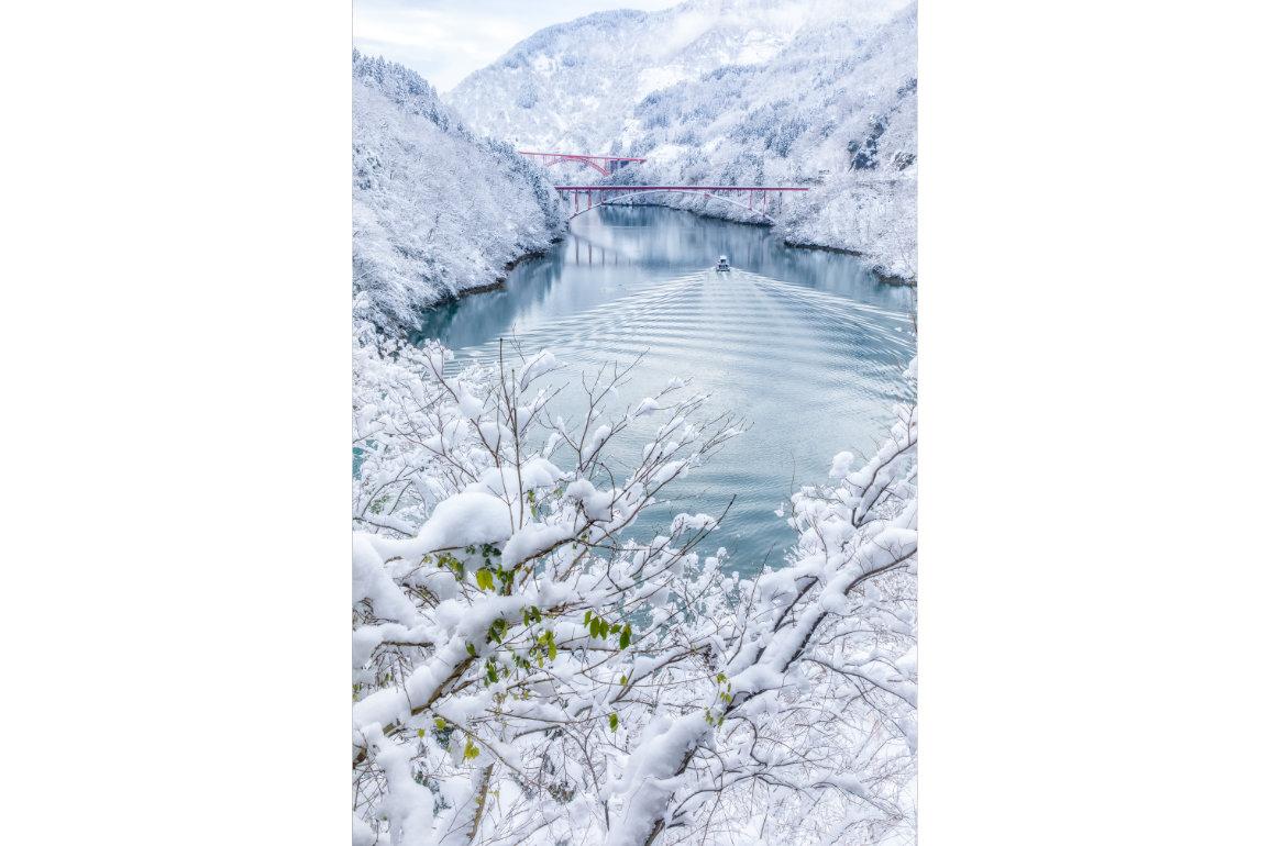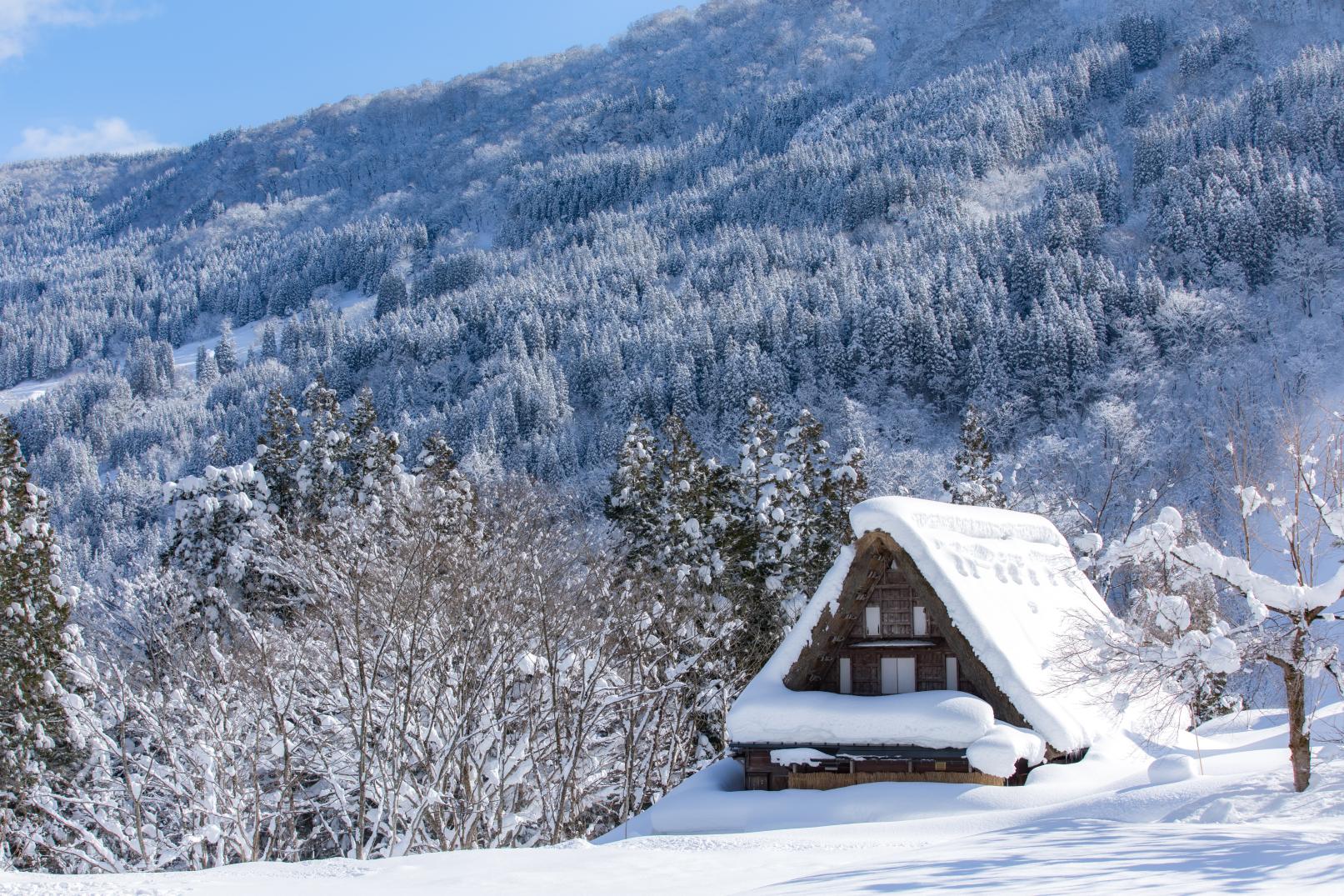 街から望む冠雪した立山連峰、銀世界の庄川峡に五箇山の合掌造り集落。冬の富山県の美しさは一言では表現できません。