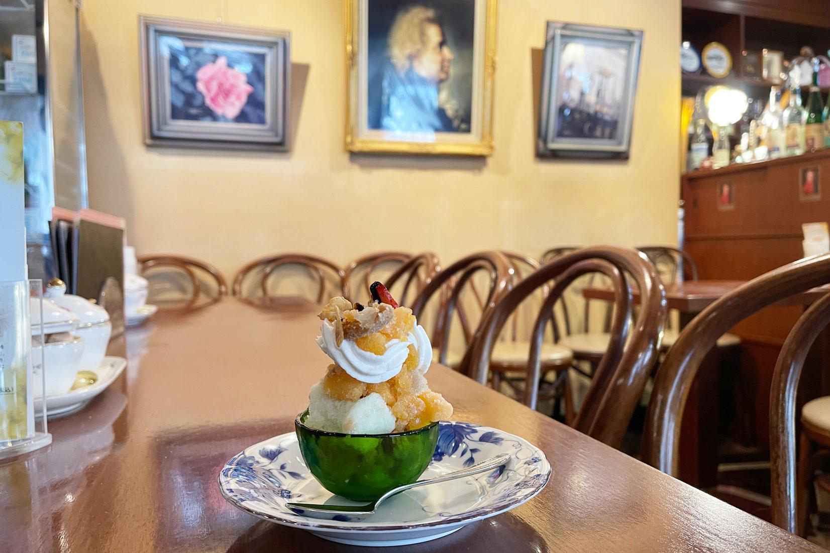 クラシックが流れるレトロなカフェでいただく「季節のミニシャーベット」が最高な癒し。