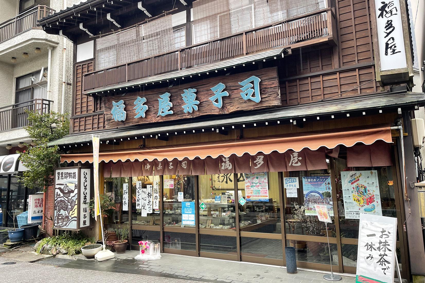 老舗の和菓子屋「福多屋菓子舗」は、「THE老舗」という雰囲気で昔ながらの懐かしさが漂うお店です。
