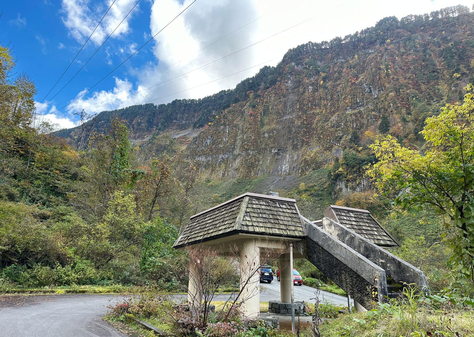 称名滝へ向かう途中に位置しているため、車で行く場合はついでに立ち寄れます。悪城の壁は、称名滝が長年かけて削った崖。密接に関連しているので、その意味でも一緒に観光するのがオススメです。