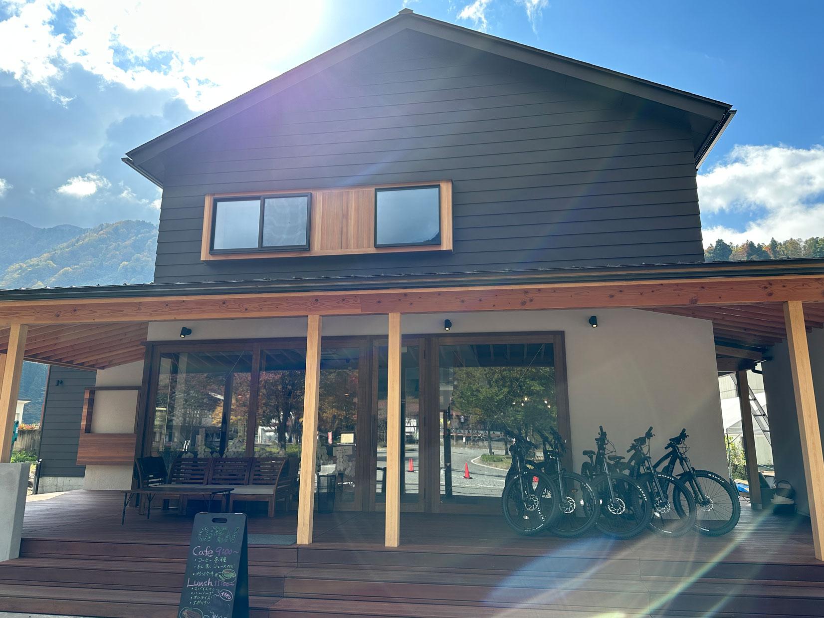 立山駅前ロータリーには、以前取材させていただいたゲストハウス「ロコモーション」さんもあります。建物の中にはカフェの他に、観光案内所も入っていて、e-バイクや電動キックボードをレンタルすることもでききるので、ぜひ立ち寄ってみてください。