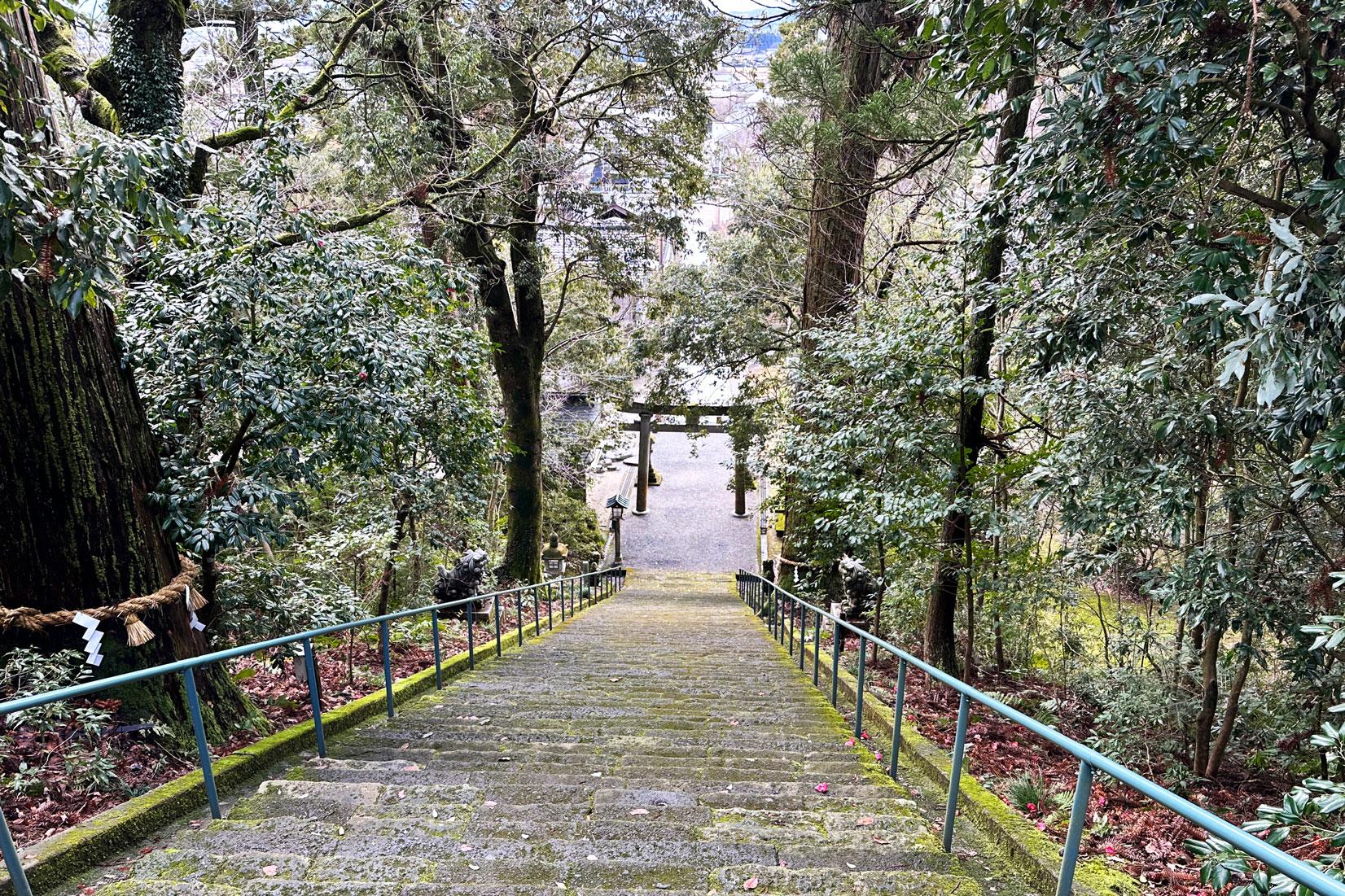天気が良ければ、石段上から木々の間に山々も見えるのでこの光景もオススメ!