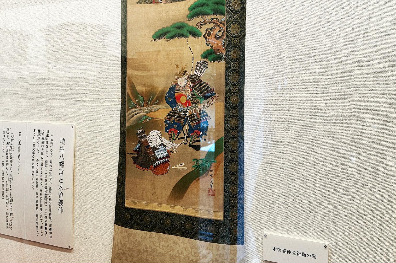 木曽義仲が、「埴生八幡宮」で倶利伽羅峠の戦いの戦勝祈願をしたときの絵です。