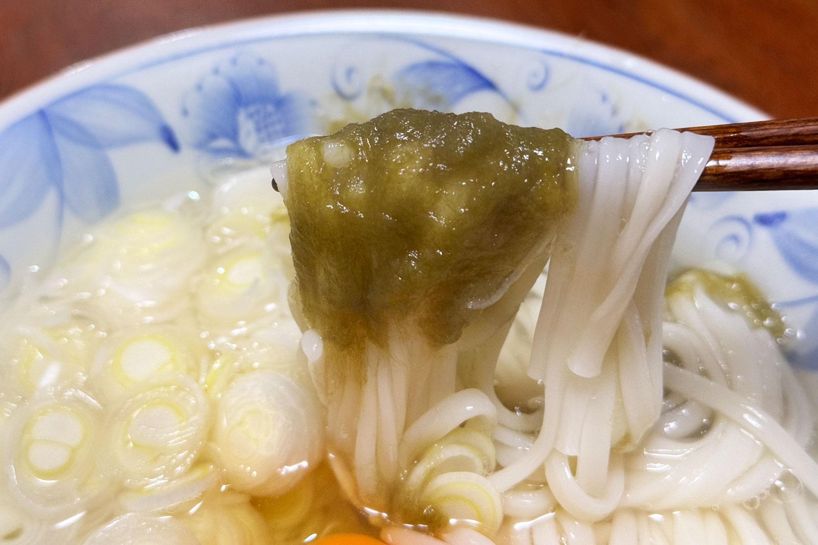 今回食べたのは細麺タイプなのですが、茹で時間は6~7分。普通の乾麺と比べるとかなり長いです。細麺といっても、麺は一般的なうどんくらいの太さがあります。