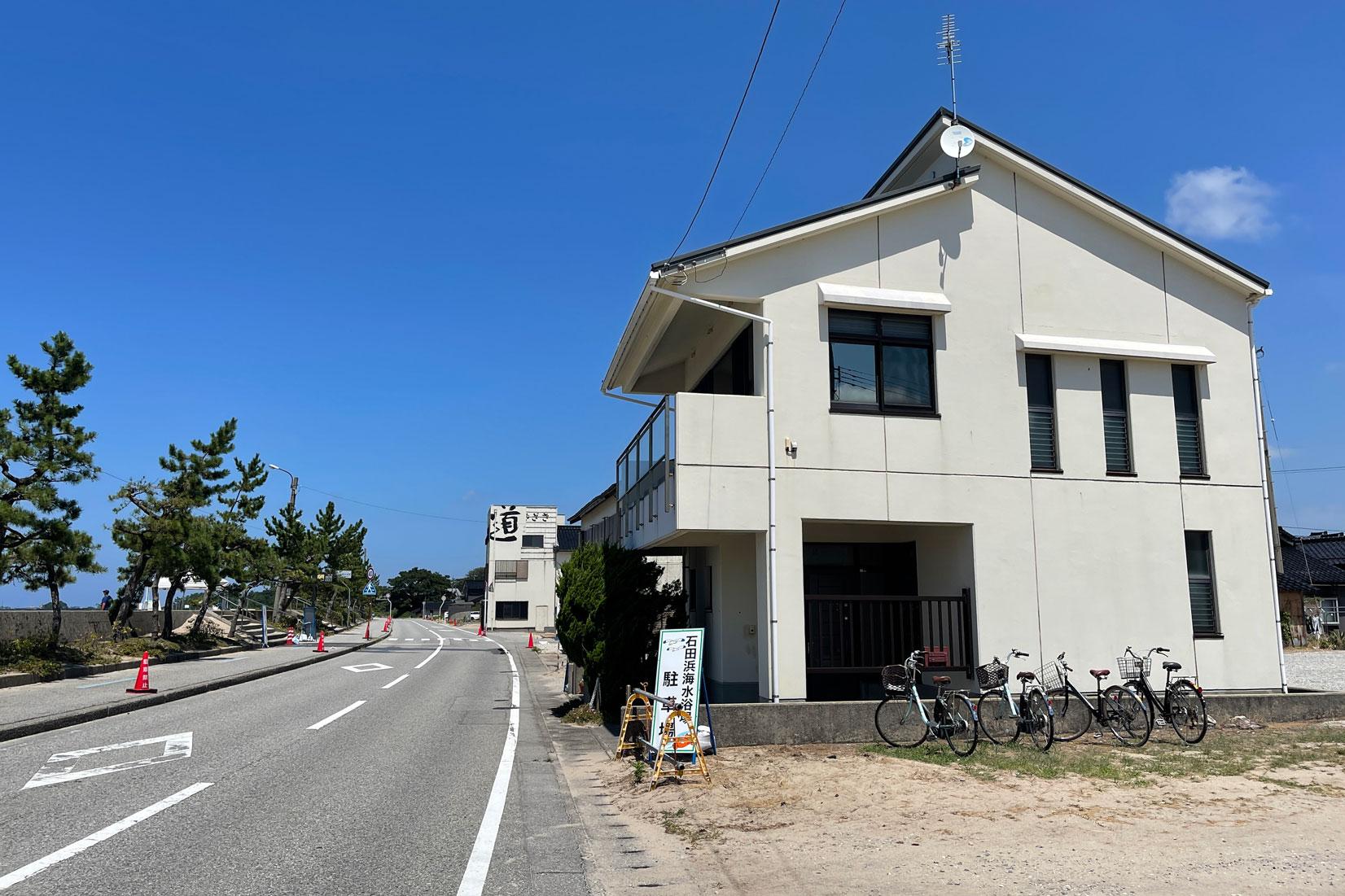 石田浜海水浴場から徒歩約5分と近く、上記で紹介したとおり、セミナーハウスは海水浴客の休憩や着替えの場所としても利用できます。