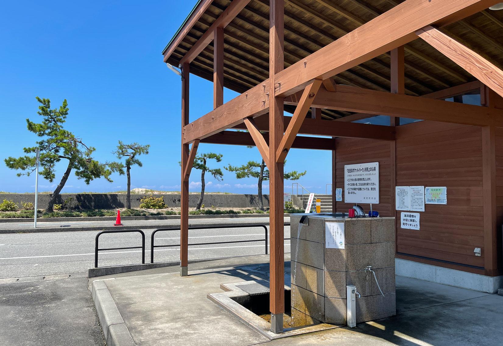 駐車場のすぐそばの湧水が湧いているスポットが「石田浜ポケットパーク」です。